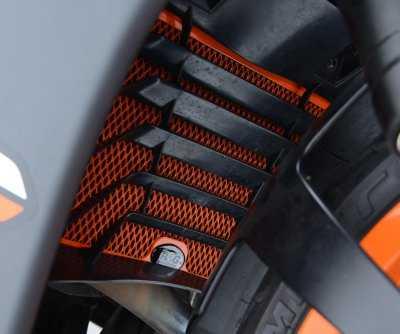 R&G kylarskydd finns i svart, titan eller orange finish för att passa KTM 250 Duke 17-, KTM 390 Duke 13-16 och RC 125 14- RC 200 14- RC 390 14-21. Tillverkade av pressat aluminium och har en snygg, sömlös ram (där så är tillämpligt). De förbättrar utseendet på din motorcykel och hjälper till att skydda din dyra och sårbara kylare från flygande skräp. Inga permanenta modifieringar behöver göras på motorcykeln. Finns i svart, titan eller orange pulverlackerad finish.