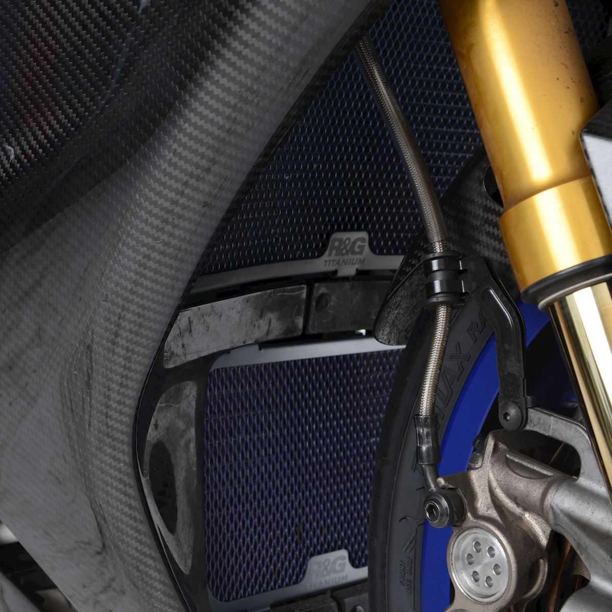 Detta R&G Titanium-kylskydd finns tillgängligt för Yamaha YZF-R1 R1M 15- och MT-10 16-modellerna. Det är både lätt och superstarkt tack vare sin äkta titannätkonstruktion (ASTM B265 Grade 1), innesluten i en sömlös aluminiumram. Detta specifika R&G-kylskydd är tillverkat av en expanderad ASTM B265 Grade 1 titanplåt och har en snygg, sömlös aluminiumram som håller skyddet säkert på plats (med hjälp av befintliga fästen eller monteringsdetaljer). Tillverkad i Storbritannien. Bilden är endast i illustrationssyfte och kanske inte är samma motorcykel som den som anges i beskrivningen.