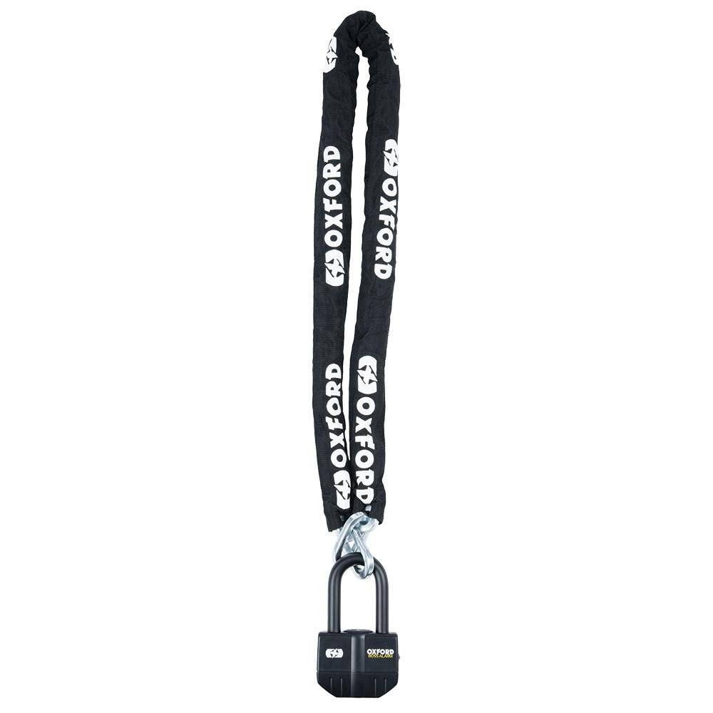 Oxford Boss Alarm hänglås är Oxfords starkaste lås någonsin med inbyggt larm. Hänglåset har en 16 mm bygel och ett öronbedövande högt 100 bB-larm som utlöses av rörelsesensorer (hänglåset kan också aktiveras utan att larmet ska ställas in). Oxford Boss Alarm har testats och godkänts oberoende av Sold Secure Powered Cycle (Motorcycle) Gold standard, Classe SRA, SBSC Intygad Produkt, FG och ART 4*. Detta lås har en nyckelbytesservice. När du köper ditt lås, anteckna helt enkelt numret som antingen är fäst vid nycklarna på en metalletikett eller är lasermärkt på varje nyckel. Viktiga funktioner - Den avtagbara, förseglade larmmodulen är vibrationsbeständig och väderbeständig mot vatten, frost och värme - Mycket högt 100 dB-larm - Kan användas som skivlås eller hänglås - Anti-jack-designen tål 4,5 ton dragbelastning - Tre nycklar och ersättningsnyckelservice tillhandahålls. - Batterier ingår (6 x LR44) - Kombinera med 12 mm härdad stålkedja för extra säkerhet