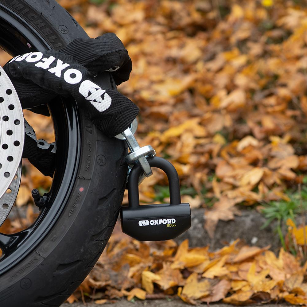 Boss är ett superstarkt kedjelås med en 12,7 mm schackel och en 12 mm högsäkerhetskedja med fyrkantiga länkar som finns i tre olika längder. Oxford Boss-kedjelåset har genomgått rigorösa oberoende tester och har tilldelats Sold Secure Powered Cycle (Motorcycle) GOLD och är SBSC-certifierat. Försäkringsrabatter finns tillgängliga i Storbritannien när du använder detta lås. Detta lås har en nyckelbytesservice. När du köper ditt lås, anteckna helt enkelt numret som antingen är fäst vid nycklarna på en metalletikett eller är lasermärkt på varje nyckel. Hänglås - Dubbel låsande schackelmekanism. - Antidricks- och borrsäker låscylinder. - Härdad stålschackel förhindrar att bulten lossnar. - Kan även användas som skivlås. - Dammskydd för att skydda låscylindern från smutsintrång. - Nyckelbyte tillgängligt. Kedja - 12 mm fyrkantig kedja tillverkad av Ni-Cro-Mo-legerat stål. - Sethärdad kedja för att motstå bultsaxar. - Zinkbelagd för att förhindra korrosion. - Skyddande tyghylsa för att förhindra skador och göra det lättare att hantera. - Långa länkar minskar vikten och ökar portabiliteten. - Passar alla Oxford-markankare. - Kan enkelt förvaras under sätet. - Finns i tre längder: 1,2 m, 1,5 m och 2,0 m.