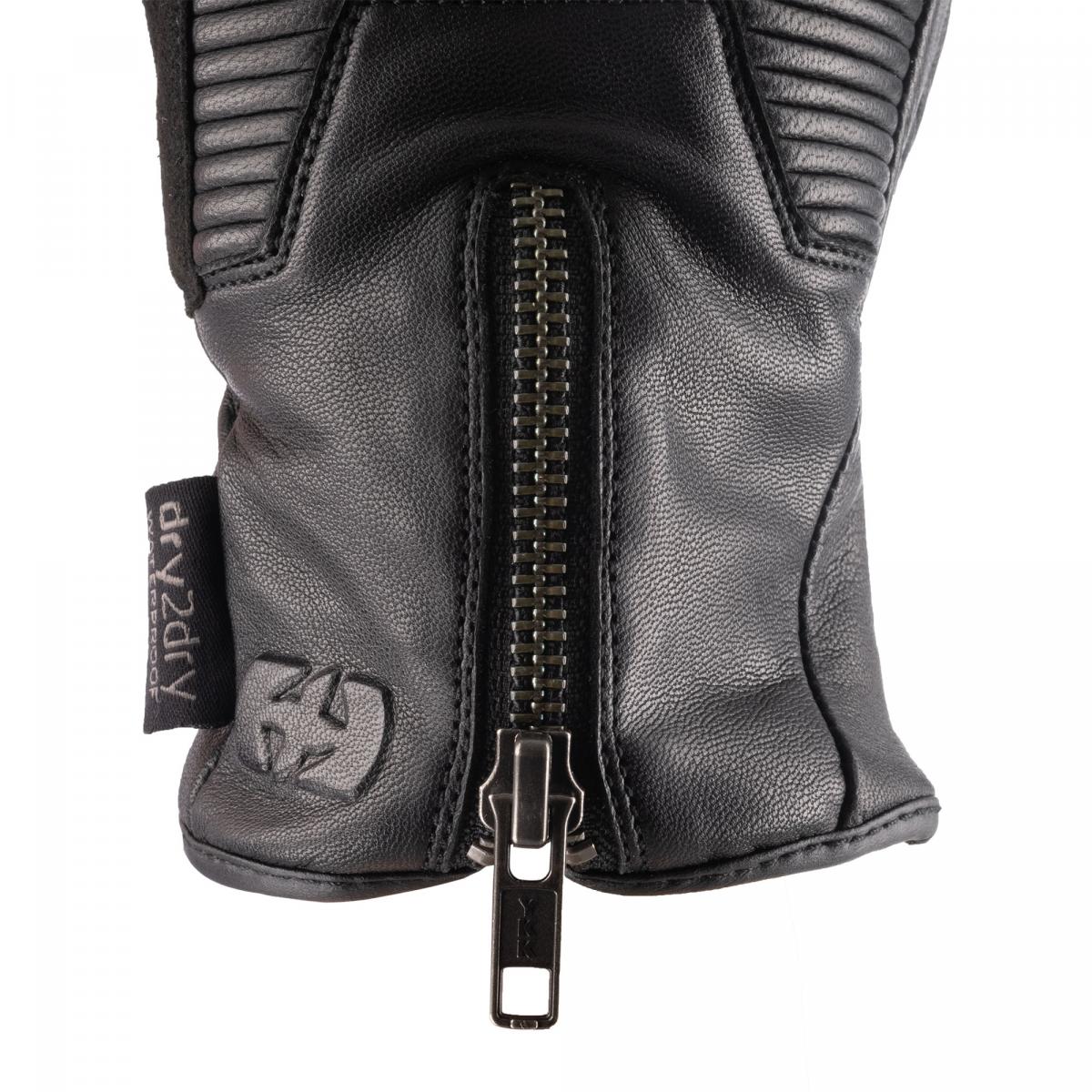 Hitcher-handsken har ett vattentätt och andningsbart Dry2Dry-membran, konstruktion i 100 % getskinn, värmeisolering och pekfinger och tumme som är kompatibel med pekskärmen. Skydd - Nivå 1-certifierat (EN13594:2015) - Hel getskinnskonstruktion för nötningsbeständighet och ökad hållbarhet - Vadderade underlag i handflata, fingrar, tumme och manschett - Amara-greppöverlägg för kontroll och komfort i alla förhållanden Klimatkontroll - Värmeisolering behåller värmen för att hålla dig varm i kalla förhållanden - Dry2Dry vattentätt och andningsbart membran - Oxford TPR-visirservett hjälper till att hålla ditt visir fritt från vattendroppar Tyg och konstruktion - Hel läderkonstruktion med läderförstärkningar - Pekfinger och tumme som är kompatibel med pekskärmen Justerbarhet och passform - Stora dragspelsinsatser för knogarna och tummar ger handsken exceptionell flexibilitet - YKK-dragkedja i handryggen möjliggör snabb påsättning - Justeringsrem med kardborreknäppning - Resår i handleden