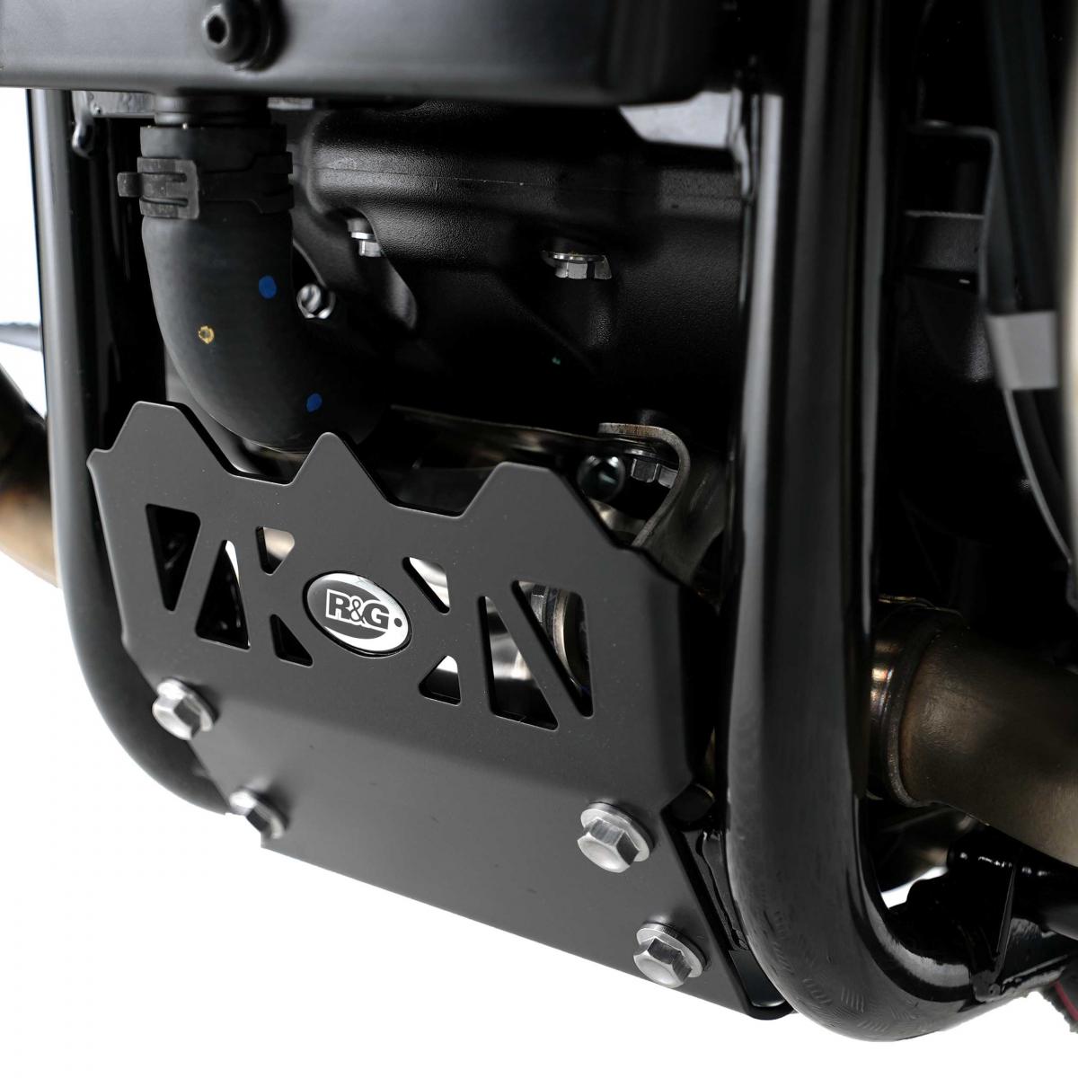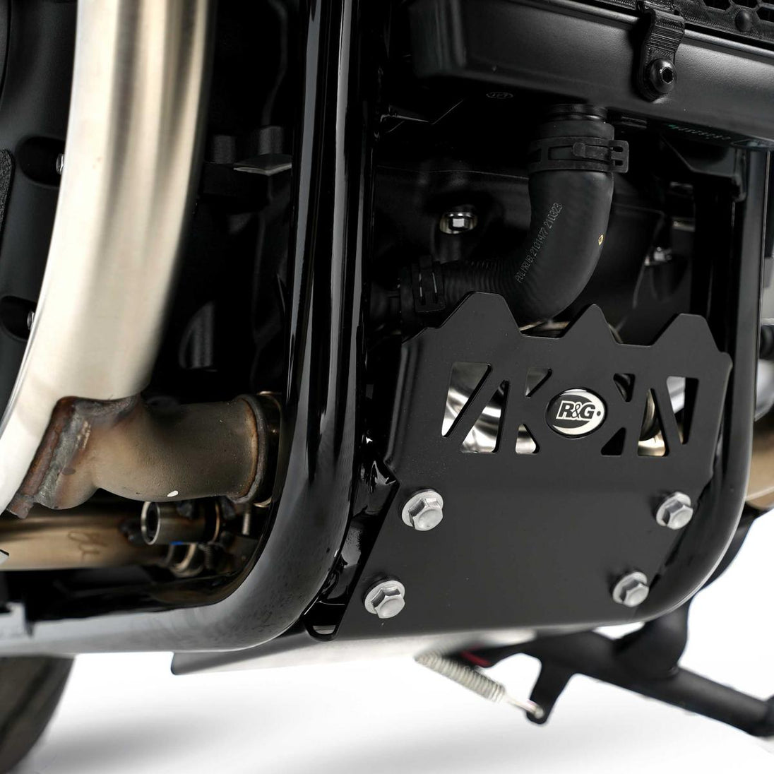 Skydda undersidan av din cykel från skador och vägskräp med en R&G-basplatta. Tillverkad av 3 mm aluminium och pulverlackerad svart för att matcha ramen och för hållbarhet. Denna basplatta är kompatibel med Triumph Bonneville Bobber 17-modeller. Enkel att installera.