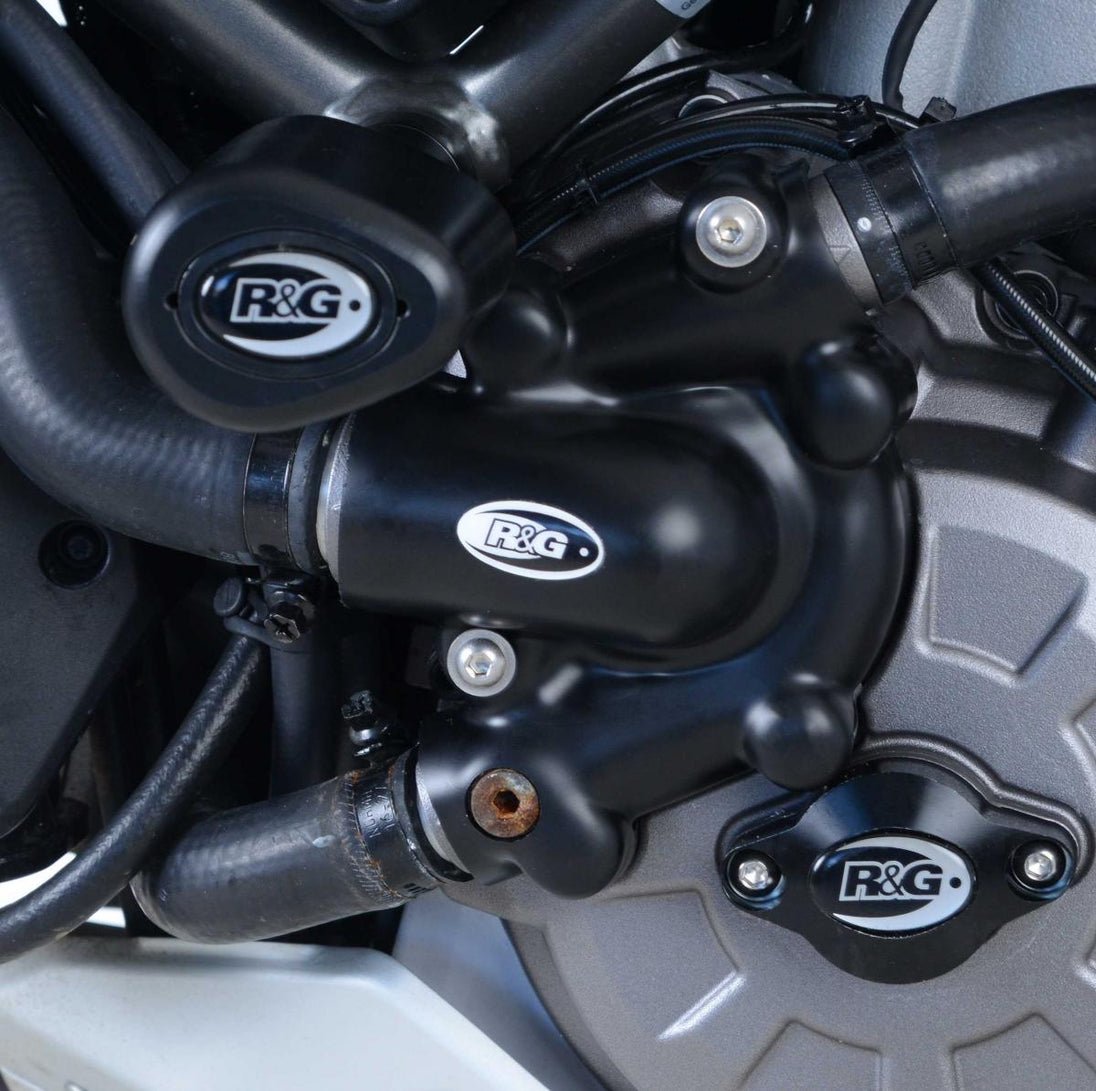 Lämplig för vänster sidokåpa (vattenpumpsskydd) på Ducati Multistrada 1260, 1260S, 1260 D-Air och 1260 Pikes Peak 18- modellerna. *OEM-vattenpumpsskyddet måste tas bort för att passa detta starkare, lättare R&G-motorkåpa (vattenpumpsskydd). *Används i stor utsträckning runt om i världen av tusentals landsvägsförare, banåkare, California Superbike School (USA) och Chris Walker Race School (Storbritannien). R&G:s hela sortiment av motorkåpor (ECC) och motorkåpesatser (KEC) har godkänts av British Superbike Championship (BSB) och MotoAmerica Series för användning i alla tävlingar som sanktioneras av dessa organisationer. Detta godkännande innebär att förare och team som tävlar i evenemang och mästerskap under dessa fanor nu har tryggheten att använda en produkt som har testats noggrant, och som uppfyller och överträffar de specifikationer som krävs för racing, enligt tävlingsmyndigheternas krav för skydd av motorkåpor vid en olycka.