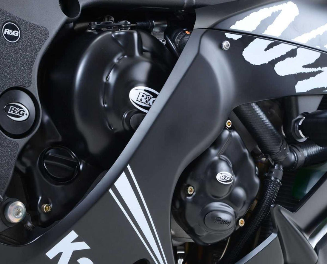 Detta specifika Race Series motorskydd är kompatibelt med Kawasaki ZX10-R 11- och ZX-10RR 21- och skyddar kopplingskåpans högra sida. R&G Race Series motorskydd har utvecklats specifikt i samarbete med utvalda högkvalitativa racingteam och krocktestats i BSB-nivåtävlingar för att säkerställa att de uppfyller och överträffar alla erforderliga standarder för motorskydd. Utöver det befintliga R&G-sortimentet av motorskydd finns R&Gs *NYA* 2015-specifika Race Series motorskydd, speciellt utvecklade på begäran av både racingteam och förare. De inkluderar en utbytbar puck eller glidare på krockytan, vilket inte bara ger kåpan mer kraft att ta itu med för att ytterligare förbättra skyddet som erbjuds av ett standard R&G motorskydd, utan erbjuder också en enkel och billig reparation om du bara skulle drabbas av en mindre glidning, krasch eller fall. Konstruerade för att bara kunna byta ut pucken och ditt skydd kan återanvändas om och om igen! R&G-höljen är enkla att installera och bultas helt enkelt fast över det ursprungliga motorhöljet, så inget krångel med lim, silikon eller epoxi. Slimmade för maximal markfrigång, ultralätta, matt finish och skydd av en av maskinens mest sårbara delar, dessa kan spara dig pengar vid en olycka ... Har du någonsin sett priserna på ett nytt motorhölje eller kostnaden för att ta bort skräp från din motor? Tillverkad i Storbritannien.