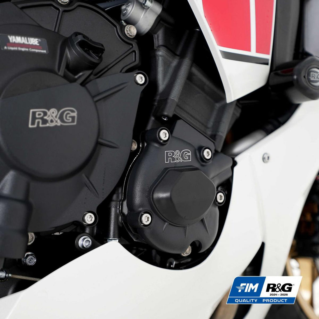 Kompatibel med höger oljepumpsskydd för Yamaha YZF-R1 17- YZF-R1M 17-R&G PRO motorhöljesskydd är FIM-godkända delar! Dessa spännande nya Pro motorhöljesskydd har utvecklats och krocktestats noggrant. Tillverkade av gjuten aluminium för styrka, hållbarhet och snyggt utseende, kompletterar de våra krockskydd perfekt. Skydden bultas enkelt fast över det ursprungliga motorhöljet så att du slipper klämma med lim eller ta bort något. Slimmade för maximal markfrigång och pulverlackerade för att skydda en av maskinens mest sårbara delar, dessa kan spara dig pengar vid en olycka ... Har du någonsin sett priserna på ett nytt motorhölje eller kostnaden för att ta bort skräp från din motor? Tillverkad i Storbritannien. Observera: Bultarna för den utbytbara lunnaren måste fästas ordentligt innan du installerar denna produkt på motorcykeln.