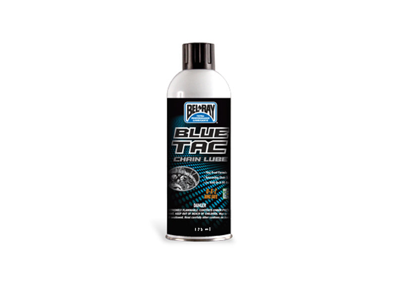 Blue Tac Kedjesmörjmedel är en högpresterande, helt syntetisk och extremt klibbig kedjan smörjmedel för gata och terrängmotorcykel, kart och ATV applikationer. Höghastighets Dyno testning bevisar att Blue Tac Kedjesmörjmedel inte kastas av i höga hastigheter inom femton minuter efter applicering. Den praktiska aerosolbehållaren gör att man enkelt kan spaya kedjan för att skydda mot rost och metall-till-metall-kontakt