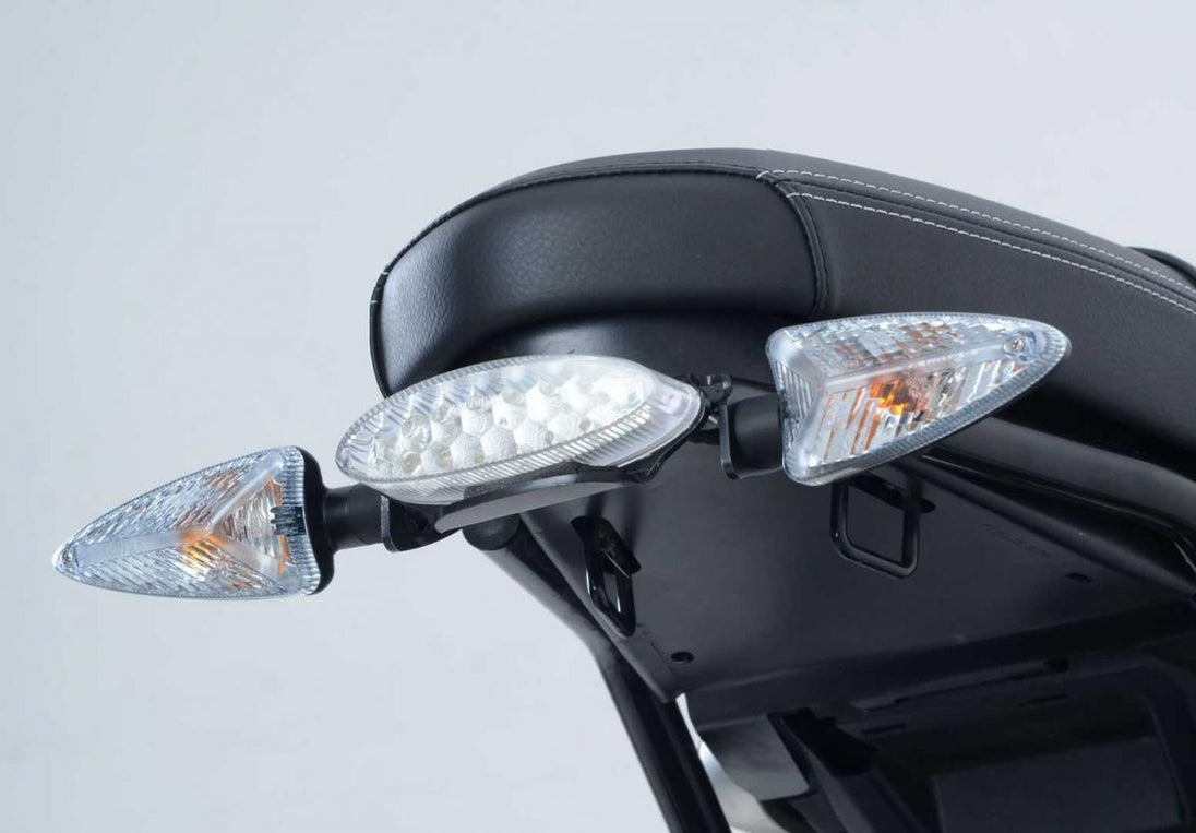 Få ordning på din motorcykels bakdel med denna R&G Tail Tidy-nummerplåtshållare för BMW R nineT 14-23. Endast USA - cw Nytt bakljus, med en svingarmsmonterad registreringsskyltshållare och blinkersfästen. Detta bakljus är avsett för användning när baksätet eller farthållaren är monterad (tvåsitsläge för kåpa) och levereras med ett reservbromsljus bak. Tillverkad av en blandning av aluminium och rostfritt stål och inkluderar en bakre nummerplåtsbelysning. Allt metallarbete är pulverlackerat svart för hållbarhet och högkvalitativ finish. Installationen är enkel tack vare den senaste 3D-skanningstekniken för en exakt passande bakenhet med fabriksdesign.