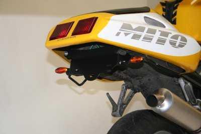 Denna bakplåtshållare passar Cagiva Mito 125-modellerna. Den ersätter originalhållaren för registreringsskylten med en mycket mindre hållare för registreringsskylten, vilket ger motorcykeln tillbaka sitt sportiga utseende!