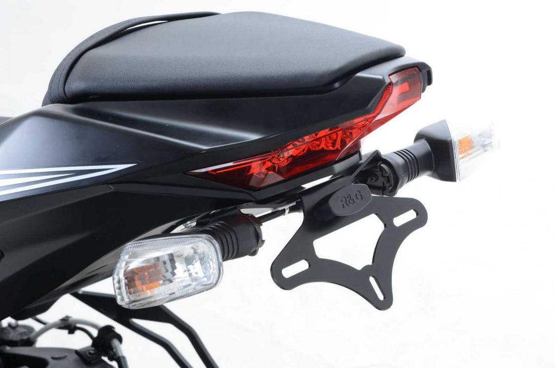 Dess konstruktion och design i mattsvart pulverlack i rostfritt stål säkerställer långvarig hållbarhet och prestanda. R&G:s bakre enhet är enkel att montera och förvandlar motorcykelns bakdel genom att ta bort de stora (och ofta fula!) originalskyltshållarna. De ersätts med en mycket snyggare enhet och registreringsskylten placeras under baksätesenheten för ett mycket snyggare och sportigare utseende. Denna R&G-bakenhet är kompatibel med Kawasaki ZX10-R 16-modellerna och förstärks med sina direktmonterade plug-and-play-kabelkontakter som möjliggör en sömlös installation. Den är dessutom kompatibel med både originalblinkers eller eftermarknadsblinkers (8 mm) mikrominiblinkers (RG370RG371RG372) tack vare de medföljande adapterplattorna.