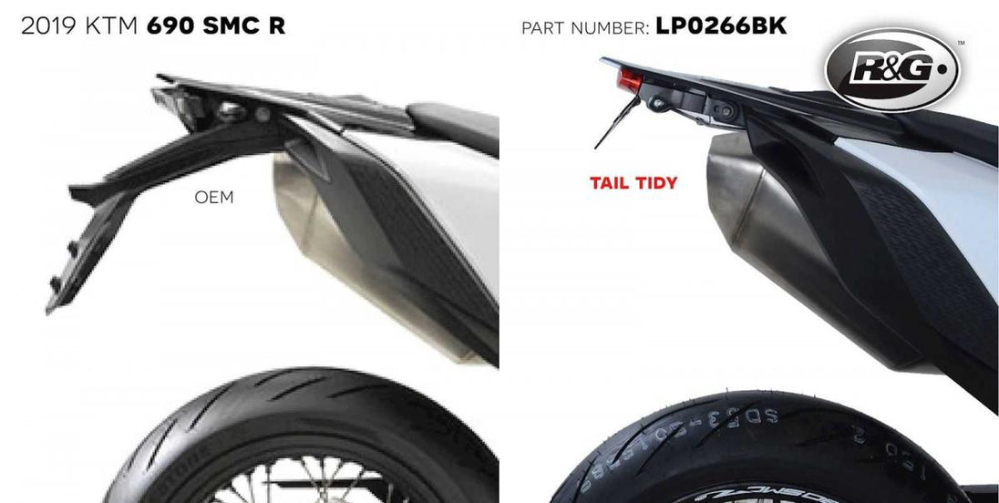 Rensa upp bakdelen av Tail Tidy till KTM 690 SMC-R, 690 Enduro R 19- och GASGAS SM700 22- med denna R&G Tail Tidy. R&G:s bakdel är enkel att montera och kommer att förändra bakdelen av motorcykeln radikalt genom att ta bort de stora (och ofta fula!) originalskyltshållarna – och ersätta dem med en mycket snyggare enhet.