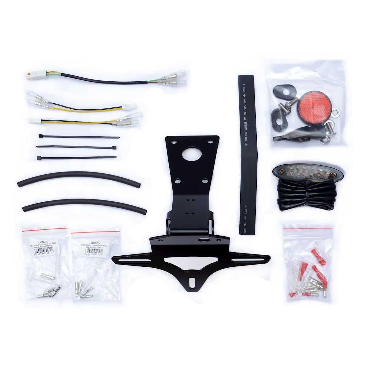 Pigga upp bakpartiet på KTM 790 Duke från 18 och 890 Duke R 20-modellerna radikalt med denna slimmade R&G Tail Tidy. Dess konstruktion och design i rostfritt stål och mattsvart pulverlackering säkerställer hållbarhet och prestanda. R&G Tail Tidies är enkla att montera och kommer att radikalt förvandla motorcykelns bakparti genom att ta bort de expansiva (och ofta fula!) originalskylthållarna – och ersätta dem med en mycket snyggare enhet. Ett e-märkt bakljus ingår också i detta kit. Kompatibelt med antingen original- eller eftermarknadsblinkers som standard.**Stilen på det rökfärgade bakljuset kan variera.***Observera också att du måste kontrollera din lokala lagstiftning innan du köper på grund av avståndet mellan bakblinkersen.**Avstånd mellan monteringspunkterna för bakblinkers: 50,3 mm. Se kod LP0248BK om du behöver en bredare enhet.