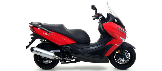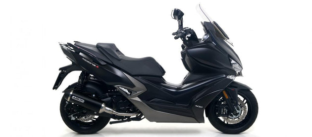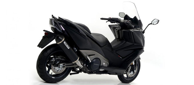 KYMCO XCITING 400I S 18/19 GODKÄND URBAN MÖRK ALUMINIUM AVGASDEL MED MÖRK INOX ÄNDKAPPA FÖR ARROW COLLECTOR