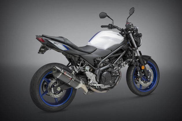 SV650 17-24/SV650X 19-24 Alpha rostfritt stål slip-on avgassystem, med kolfiberdämpare