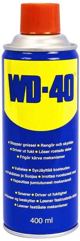 Leverantör: WD-40 WD-40 Multispray 400ml WD-40 för tusen och en användning när det gäller att lösa upp, smörja, driva ut fukt, skydda mot rost och för rengöring. Produkten är inte elektriskt ledande, har koldioxid som drivgas samt är silikonfri.Ordinarie pris 189 krOrdinarie pris 189 kr