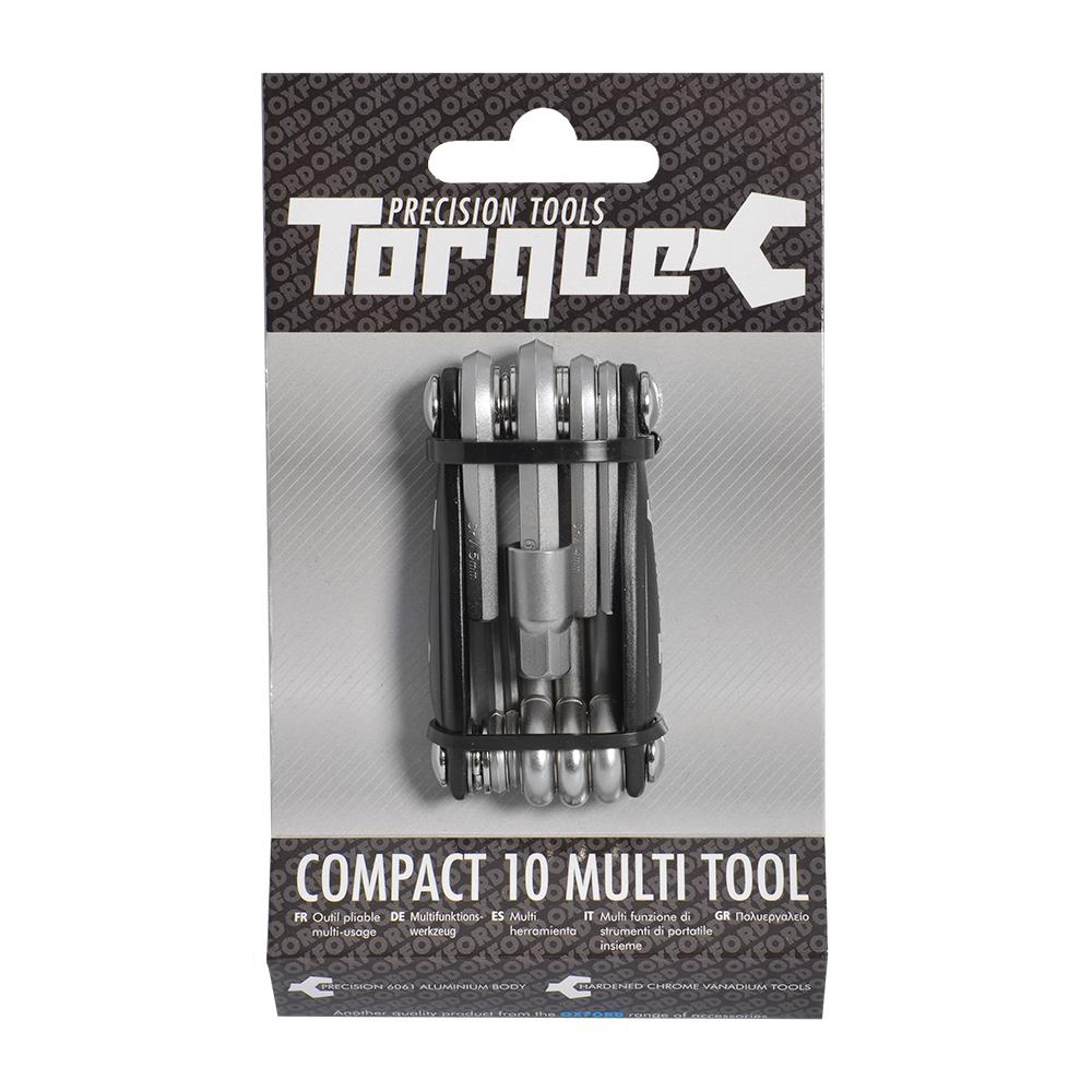 Torque Compact 10 fällbara multiverktyg innehåller 10 kromvanadiumverktyg. Det har laseretsad grafik och lätta sidor i 6061-aluminium. Viktiga funktioner - 2, 2,5, 3, 4, 5, 6, 8 mm insexnycklar - T25 Torx - Stjärnskruvmejsel nr 2 - 5,5 mm platt skruvmejsel