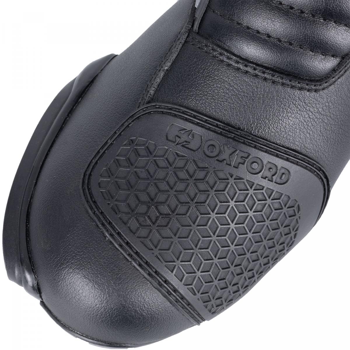 Cypher 1.0 Dry2Dry är designad för gatcyklister och erbjuder hög prestanda, skydd och kontroll utan att kompromissa med komforten. Cypher 1.0 är CE-certifierad enligt nivå 2/2/2/2, den högsta möjliga klassificeringen. Stor vikt har lagts vid stövelns skyddande egenskaper för att uppnå detta, inklusive PU-förstärkningar vid tån, hälkappan, fotbädden och fotleden. Mikrofiberovandeln har också imponerande motståndskraft mot nötning och skärskador. Cypher 1.0 använder Oxfords prestandasportsula och externt TPU-system för ben- och hälskydd, vilket ger imponerande kontroll och sinnesro när du behöver det som mest. Komfortfunktioner som dragspelsstretch fram och bak förbättrar stövelns flexibilitet och minskar trötthet utan att påverka skyddsprestanda. Ett 3D-nätfoder förbättrar andningsförmågan och arbetar hand i hand med det andningsbara Dry2Dry-membranet för att transportera bort svett för komfort hela dagen. Skydd - CE-certifierad nivå 2/2/2/2 (EN 13634) - Höjd: CE Nivå 2 (vadhöjd) - Slitstyrka: CE Nivå 2 - Stötdämpning: CE Nivå 2 - Tvärgående styvhet: CE Nivå 2 - Utvändigt TPU-skydd för benben och häl - Avtagbara tåslidar - PU-förstärkt tå- och hälkappa - PU-fotbädd för åkkomfort och skydd - PU-fotledsskydd Klimatkontroll - Dry2Dry vattentätt och andningsbart membran - 3D-nätfoder för andningsförmåga Tyg och konstruktion - Ovandel i mikrofiber - Halkfri gummisula för motorcykel - Växelspaksdyna Justerbarhet och passform - Dragspelsstretchzoner fram och bak - YKK-dragkedja med kardborreband Försäkran om överensstämmelse Klicka här för att se överensstämmelsescertifieringar