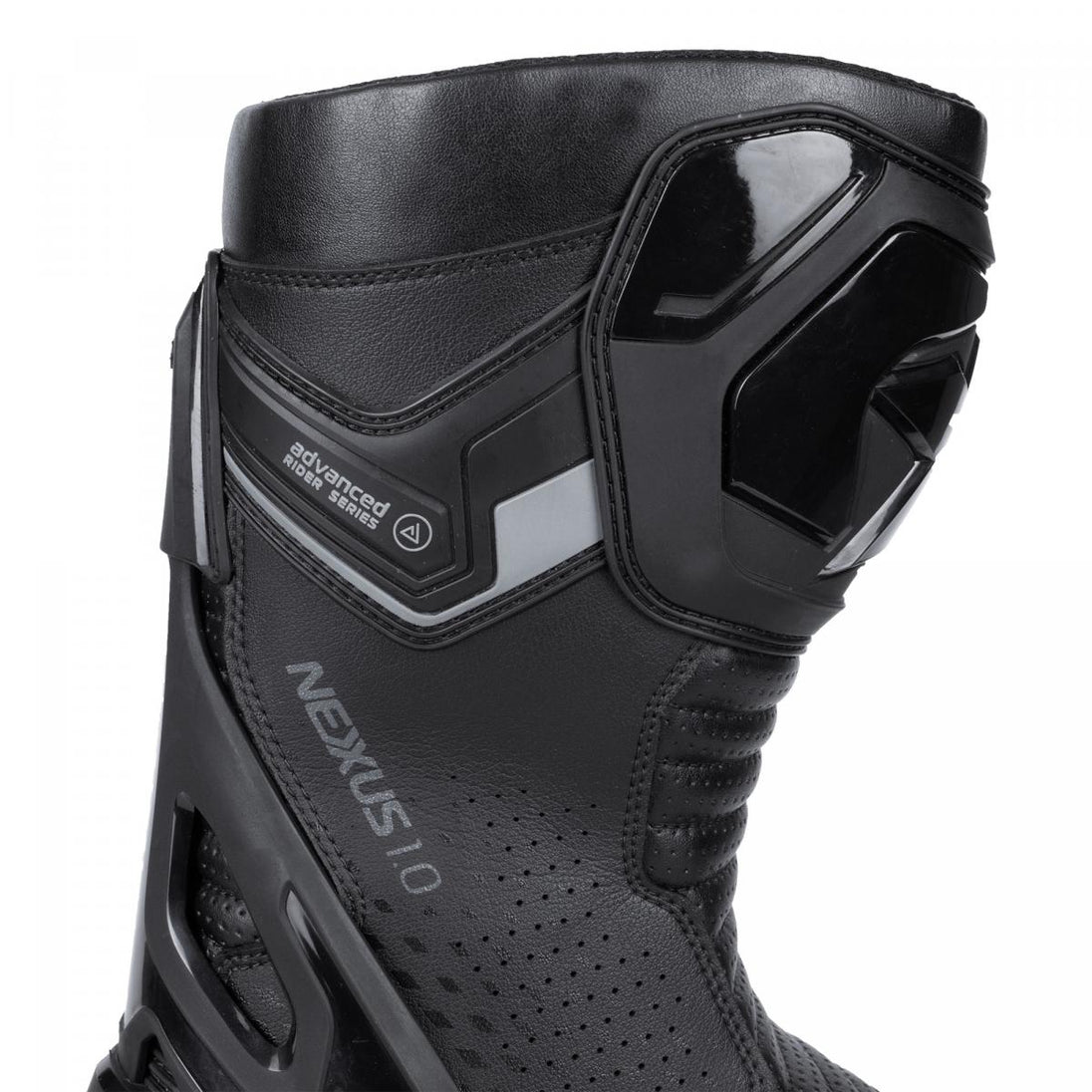 NEXUS är designad och konstruerad från grunden och är kulmen på fyra års forskning och utveckling och mer än 40 års erfarenhet sedan tävlingsförare började köra runt på banorna i utrustning av Oxford-märket. NEXUS 1.0 Air är CE-certifierad enligt nivå 2/2/2/2, den högsta möjliga skyddsklassen. Stor vikt har lagts vid skons skyddande egenskaper för att uppnå detta, inklusive interna PU-förstärkningar vid tån, hälkappan, fotbädden och fotleden. Mikrofiberovandeln har också imponerande motståndskraft mot nötning och skärsår. Designen kretsar kring en ergonomiskt utformad extern ledad fotledsstöd, som möjliggör flexibilitet vid växling och bromsning samtidigt som den skyddar mot överdriven sidledsrörelse. TPU-förstärkningar vid smalbenet och hälen, förutom avtagbara tåsliders, ger ytterligare skydd mot stötar och nötning. Komfortfunktioner som dragspelsstretch fram och bak förbättrar skons flexibilitet, vilket minskar trötthet utan att påverka skyddsprestanda. Ett 3D-nätfoder förbättrar andningsförmågan och arbetar hand i hand med perforerade zoner för att transportera bort svett för komfort hela dagen. Skydd - CE-certifierad nivå 2/2/2/2 (EN 13634) - Höjd: CE Nivå 2 (vadhöjd) - Slitstyrka: CE Nivå 2 - Stötdämpning: CE Nivå 2 - Tvärgående styvhet: CE Nivå 2 - Utvändigt TPU-skydd för benben, häl och vad - Utvändigt, ledat TPU-fotledsskydd - Avtagbara tåskydd - PU-förstärkt tå och hälkappa - PU-fotbädd för åkkomfort och skydd - PU-fotledsskydd Klimatkontroll - Perforerade paneler för maximalt luftflöde - 3D-nätfoder för andningsförmåga Tyg och konstruktion - Ovandel i mikrofiber - Halkfri gummisula för motorcykel - Växelspaksdyna Justerbarhet och passform - Dragspelsstretchzoner fram och bak - YKK-dragkedja med kardborreband Försäkran om överensstämmelse Klicka här för att se överensstämmelsescertifieringar