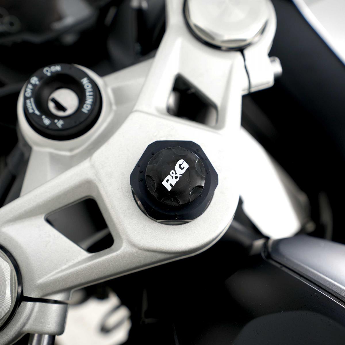 Denna topplock för gaffeln passar BMW S1000RR 19-, S1000R Sport M Sport 21- & M1000RR 21-22, Triumph Trident 660 21-, Daytona 660 24- & Moto Guzzi V100 23-A. Ett måste för att ge din styrstammutter ett färdigt utseende. Genom att täcka den ursprungliga gaffelmuttern och säkra den på plats tack vare den ribbada designen säkerställs en tät passform som inte faller ut eller rör sig. Ytbehandling: Svart. Säljs som en styck.