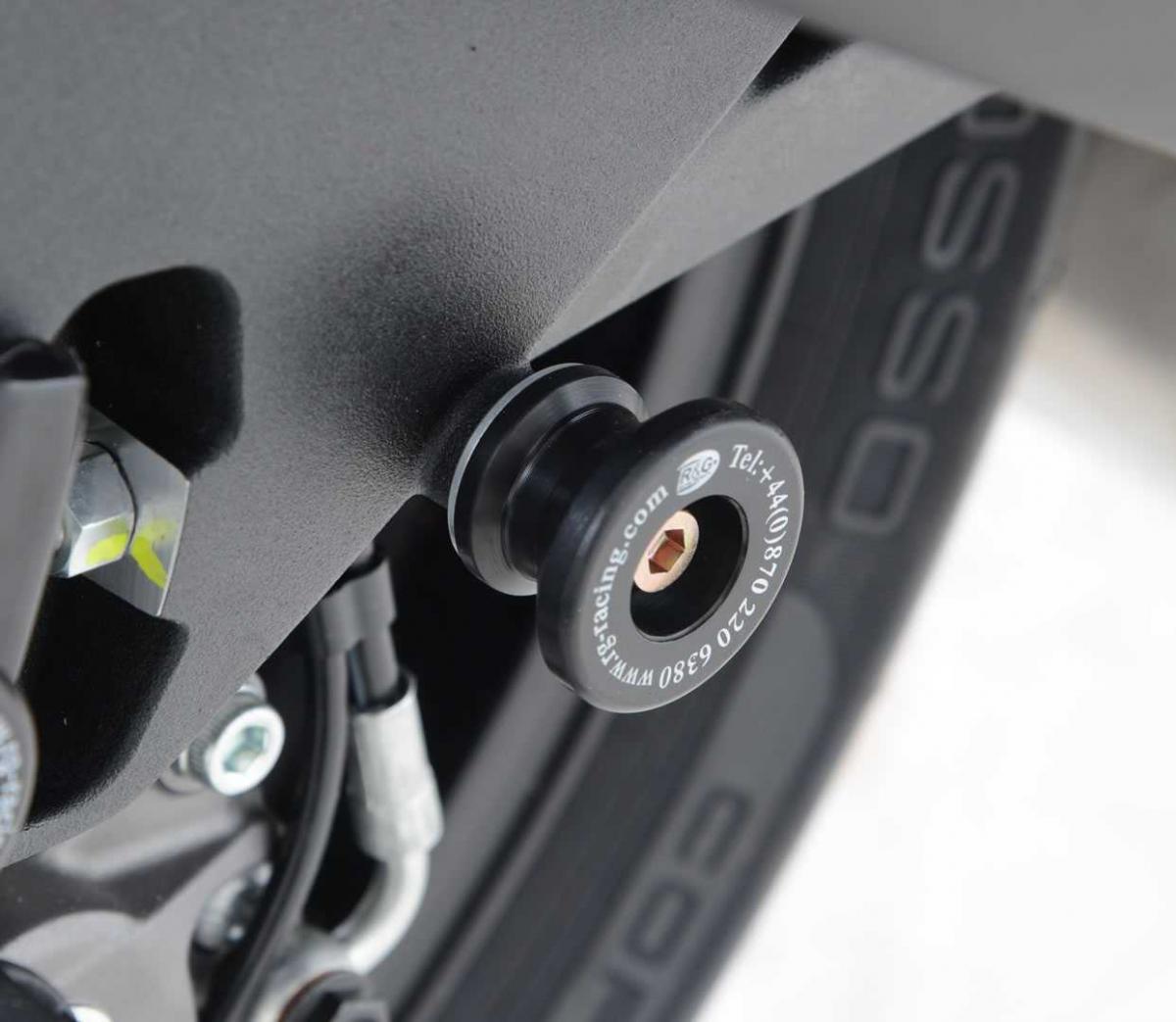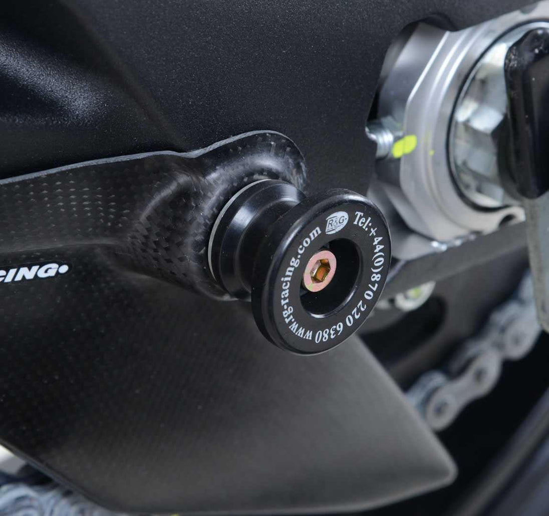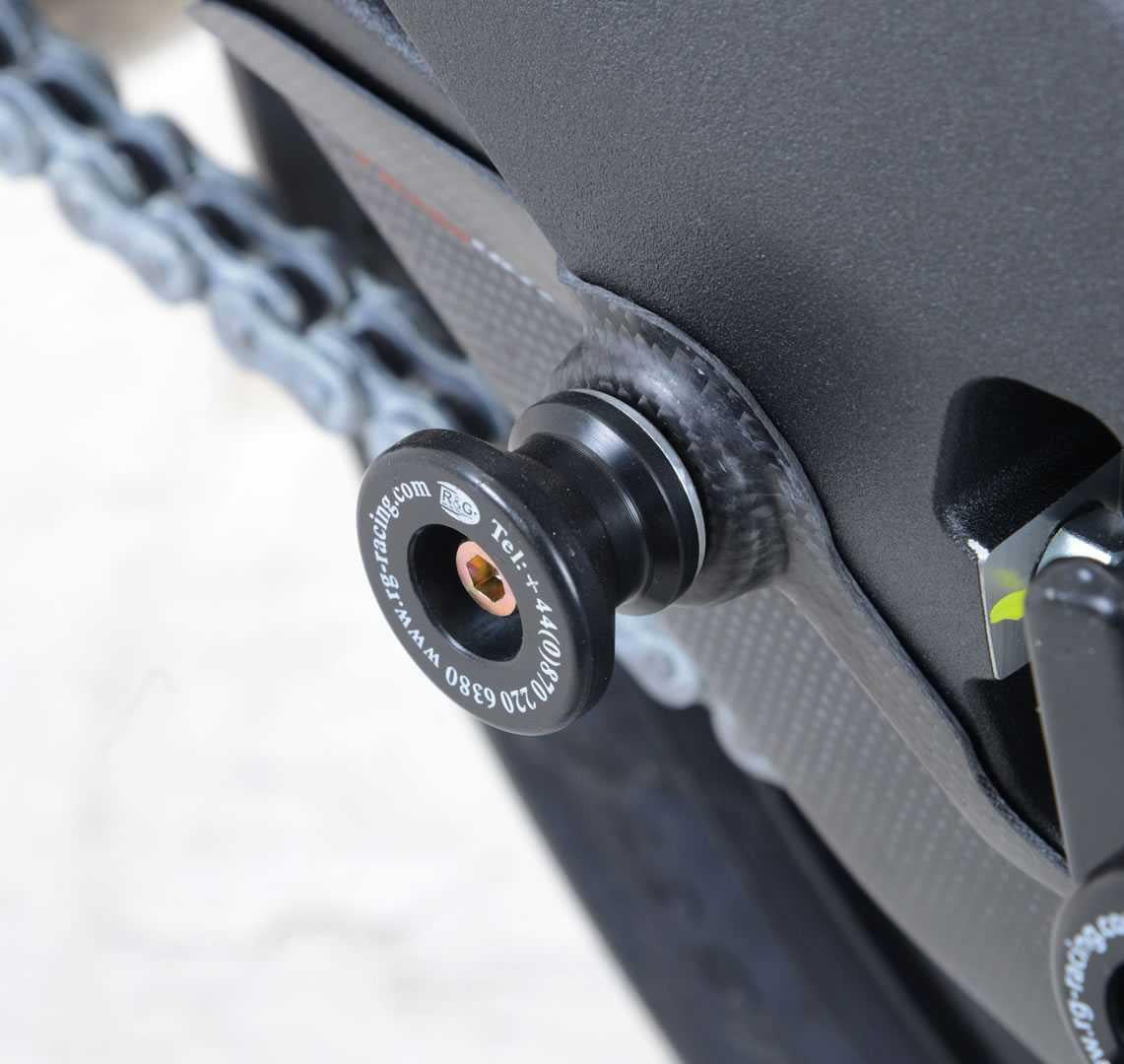 Dessa bomullsrullar monteras direkt i monteringspunkterna på den bakre svingarmen och erbjuder det bästa av två världar när det gäller krockskydd och funktionalitet. De kan använda R&G-bomullsrullar, vilket ger utmärkt krockskydd för de komponenter som är placerade bak, samt möjligheten att lyfta upp bakdelen av cykeln med ett paddockställ för underhåll och däckbyten. De är utformade för att vara något mindre än en vanlig bomullsrulle för att de ska kunna passera det ursprungliga avgasröret, vilket under extrema körförhållanden kan träffa en bomullsrulle i standardstorlek. Finns ENDAST i svart. Säljs i par.
