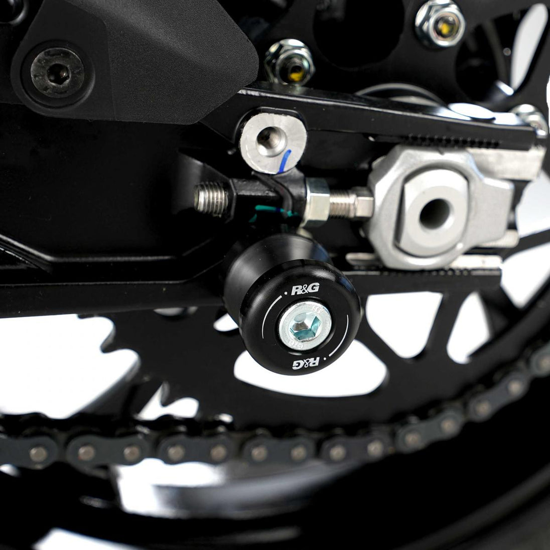 Är det bomullsrullar eller spindelglidare? Ja, båda är det verkligen!! Bomullsrullen skyddar svingarmen i de flesta krascher. Motorcykeln kan också lyftas på bomullsrullarna med hjälp av ett paddockställ med krokar (föreslår R&G-kod SH0001). Dessa bomullsrullar är speciellt utformade för att skruvas direkt in i svingarmen på KTM 690 Duke IIII 12- och framåt, 1290 Super Adventure R 23-, Duke 125250390 24-, Husqvarna Norden 901 22-, Moto Morini X CAPE 649 21- och Seiemmezzo SCR 21-) och levereras med 1,5 mm slitage.