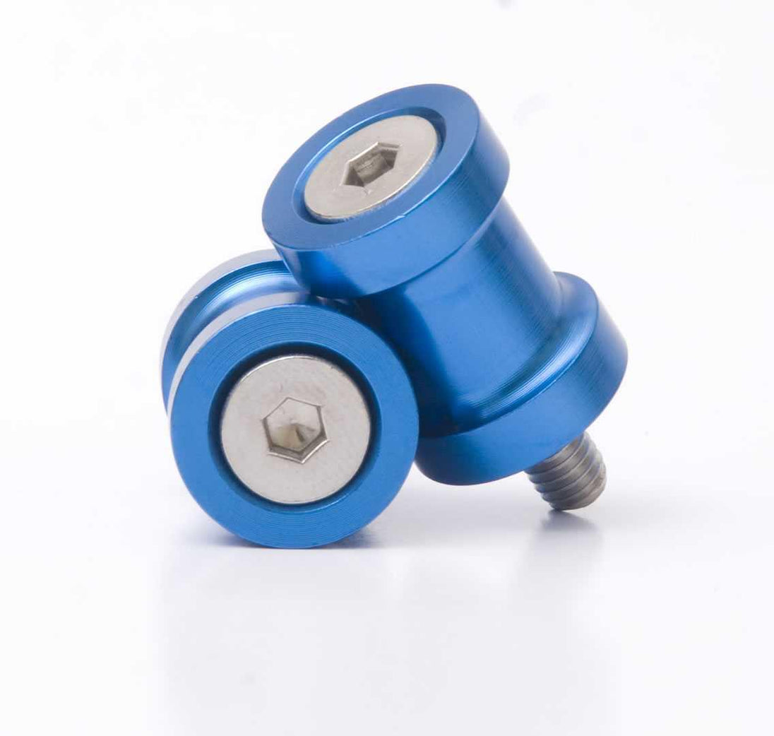 Dessa spolar i anodiserat aluminium för paddockställ passar de flesta Honda-, Suzuki- och senare Kawasaki- och Triumph-modeller. Levereras i par.