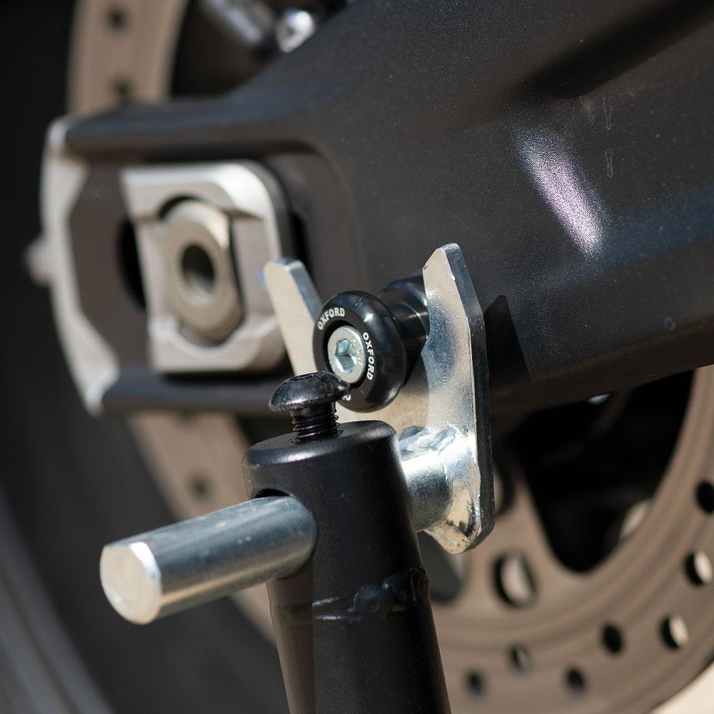 Spolar gör det mycket enklare och snabbare att montera ett bakre paddockställ på din cykel. Ramgafflar måste monteras på det bakre paddockstället innan spolar kan användas. Viktiga funktioner - De flesta cyklar har förgängade hål i sina svingarmar för att passa spolar. - Gör inga märken på cykelns svingarm - Vissa cyklar har ojämna svingarmar, vilket gör användningen av spolar till det enda sättet att säkert montera ett bakre paddockställ Obs: kontakta din cykeltillverkare för vilken bult- och gängstorlek som krävs för din cykel.