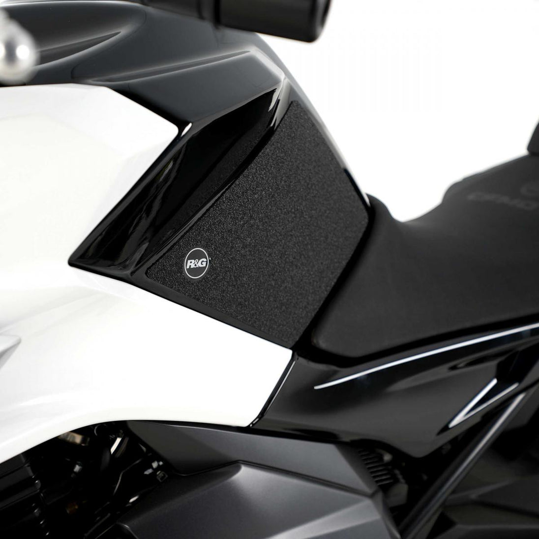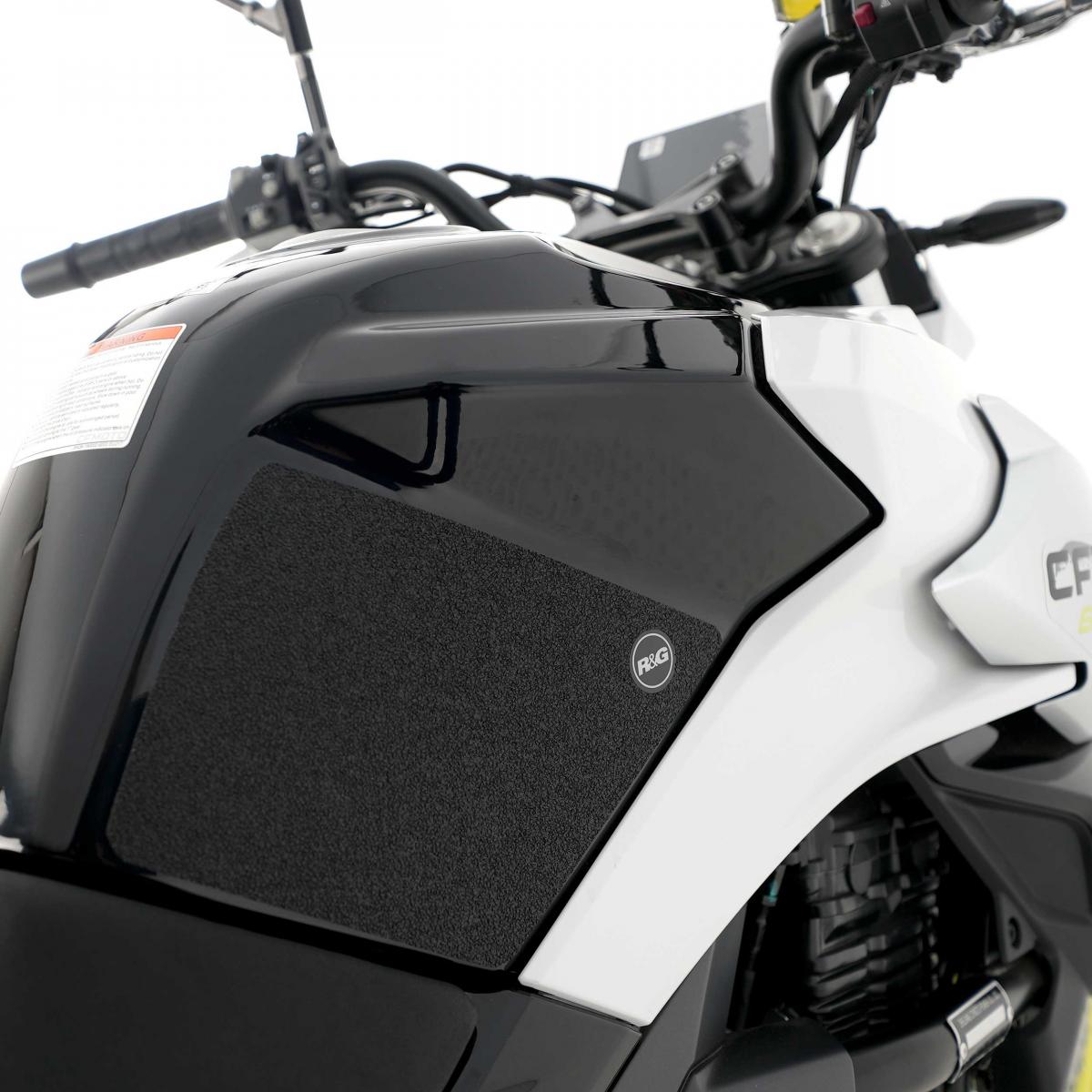 Detta 2-delade R&G Tank Traction Grip-kit har specialdesignats för CFMoto 650NK 22-modellerna. R&G Tank Traction Grip-kit finns tillgängliga för många olika motorcykelstilar och märken, och nya applikationer släpps regelbundet. Den unika R&G Tank Traction Grip-strukturen har specialdesignats för att vara både mjuk och hållbar, vilket ger föraren det grepp och den känsla hen behöver för att få bättre kontroll över motorcykeln, vilket gör att föraren kan bibehålla en stabil kroppsposition vid kurvtagning och inbromsning. Observera: R&G Tank Traction Grips levereras nu med ett självhäftande emblem med 25 mm diameter. Tillverkat i Storbritannien.