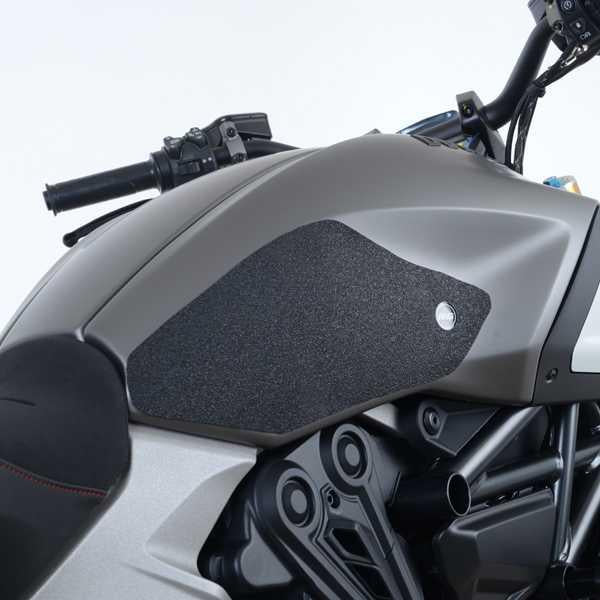 Detta 2-delade R&G Tank Traction Grip-kit har specialdesignats för Ducati Diavel 1260 (S) 19-modellen. R&G Tank Traction Grip-kit finns tillgängliga för många olika motorcykelstilar och märken, med nya applikationer som släpps regelbundet. Den unika R&G Tank Traction Grip-strukturen har specialdesignats för att vara både mjuk och hållbar, vilket ger föraren det grepp och den känsla hen behöver för att få bättre kontroll över motorcykeln, vilket gör att föraren kan bibehålla en stabil kroppsposition vid kurvtagning och inbromsning. Observera: R&G Tank Traction Grips levereras nu med ett självhäftande emblem med 25 mm diameter. Tillverkat i Storbritannien.