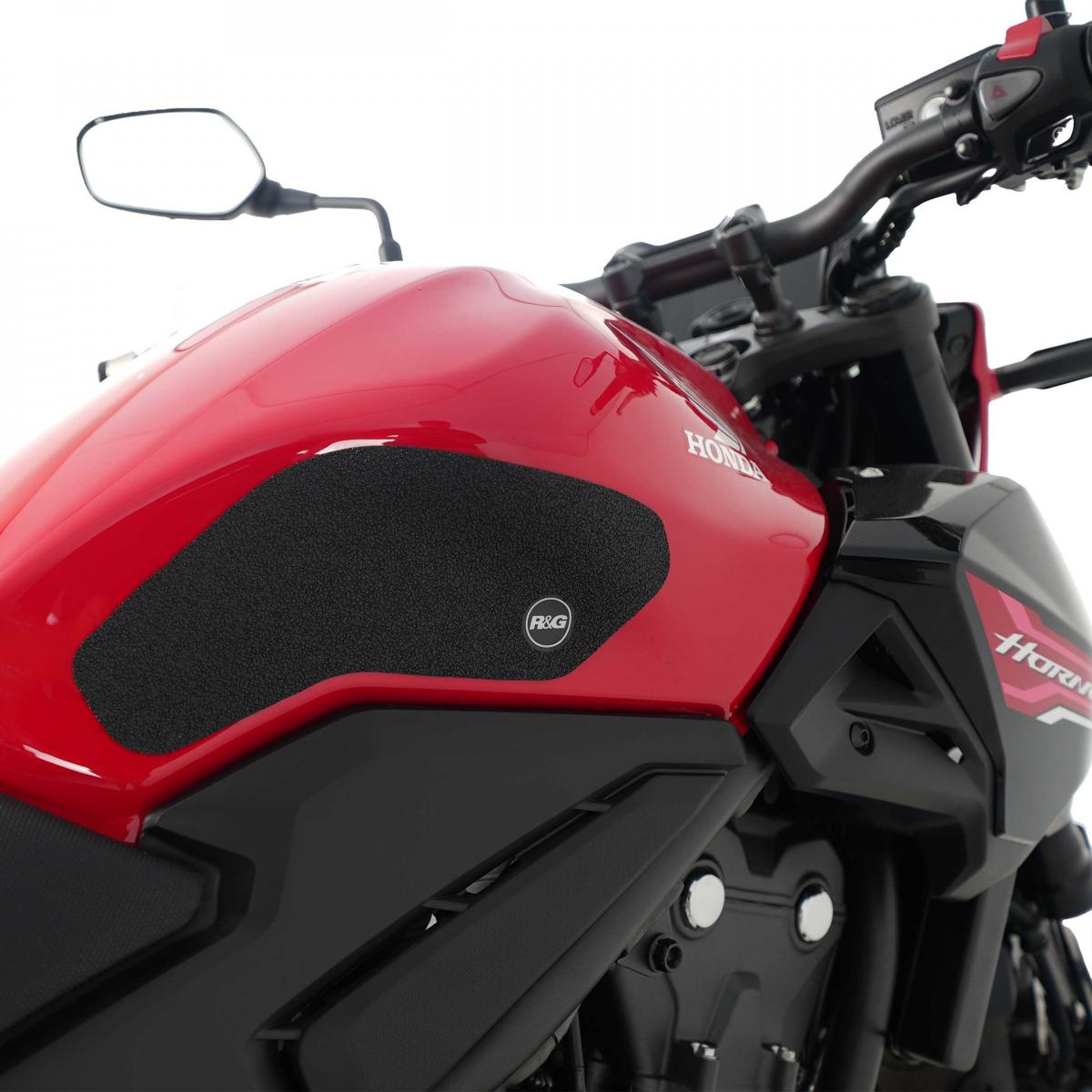 Detta 2-delade R&G Tank Traction Grip-kit har specialdesignats för Honda CBR500R 19- och CB500F 19-modellerna. R&G Tank Traction Grip-kit finns tillgängliga för många olika motorcykelstilar och märken, och nya applikationer släpps regelbundet. Den unika R&G Traction Grip-strukturen har specialdesignats för att vara både mjuk och hållbar, vilket ger föraren det grepp och den känsla hen behöver för att få bättre kontroll över motorcykeln, vilket gör att föraren kan bibehålla en stabil kroppsposition vid kurvtagning och inbromsning. Observera: R&G Tank Traction Grips levereras nu med ett självhäftande emblem med 25 mm diameter. Tillverkat i Storbritannien.