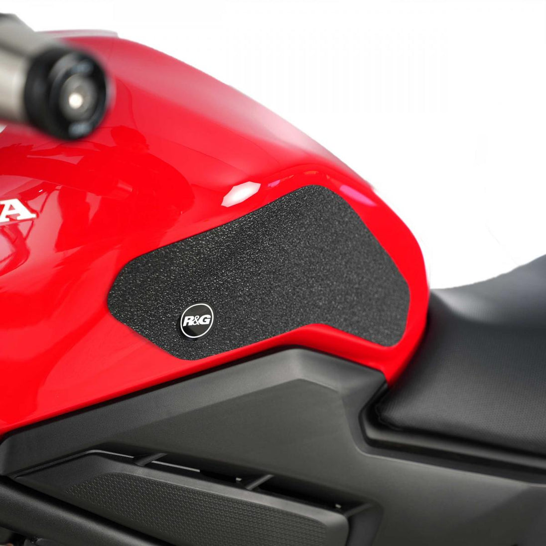 Detta 2-delade R&G Tank Traction Grip-kit har specialdesignats för Honda CBR500R 19- och CB500F 19-modellerna. R&G Tank Traction Grip-kit finns tillgängliga för många olika motorcykelstilar och märken, och nya applikationer släpps regelbundet. Den unika R&G Traction Grip-strukturen har specialdesignats för att vara både mjuk och hållbar, vilket ger föraren det grepp och den känsla hen behöver för att få bättre kontroll över motorcykeln, vilket gör att föraren kan bibehålla en stabil kroppsposition vid kurvtagning och inbromsning. Observera: R&G Tank Traction Grips levereras nu med ett självhäftande emblem med 25 mm diameter. Tillverkat i Storbritannien.