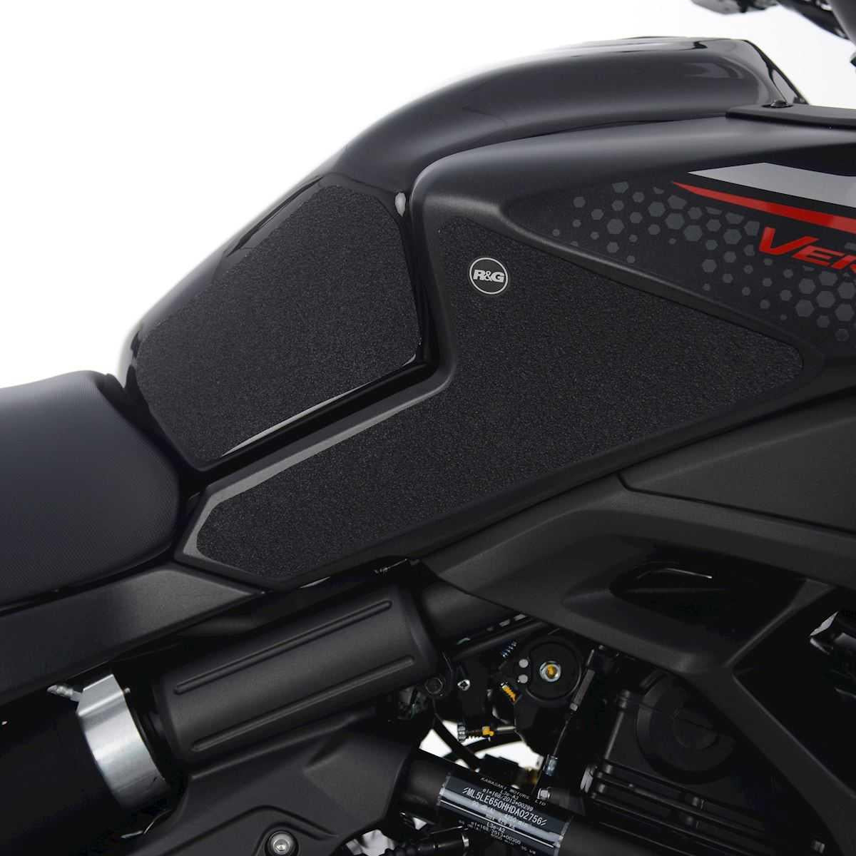Dessa 2-delade R&G Tank Traction Grips har specialdesignats för Kawasaki Versys 650 22-modellen. R&G Tank Traction Grip-kit finns tillgängliga för många olika motorcykelstilar och märken, och nya applikationer släpps regelbundet. Den unika R&G-strukturen har specialdesignats för att vara både mjuk och hållbar, vilket ger föraren det grepp och den känsla hen behöver för bättre kontroll över motorcykeln, vilket gör att föraren kan bibehålla en stabil kroppsställning vid kurvtagning och inbromsning.