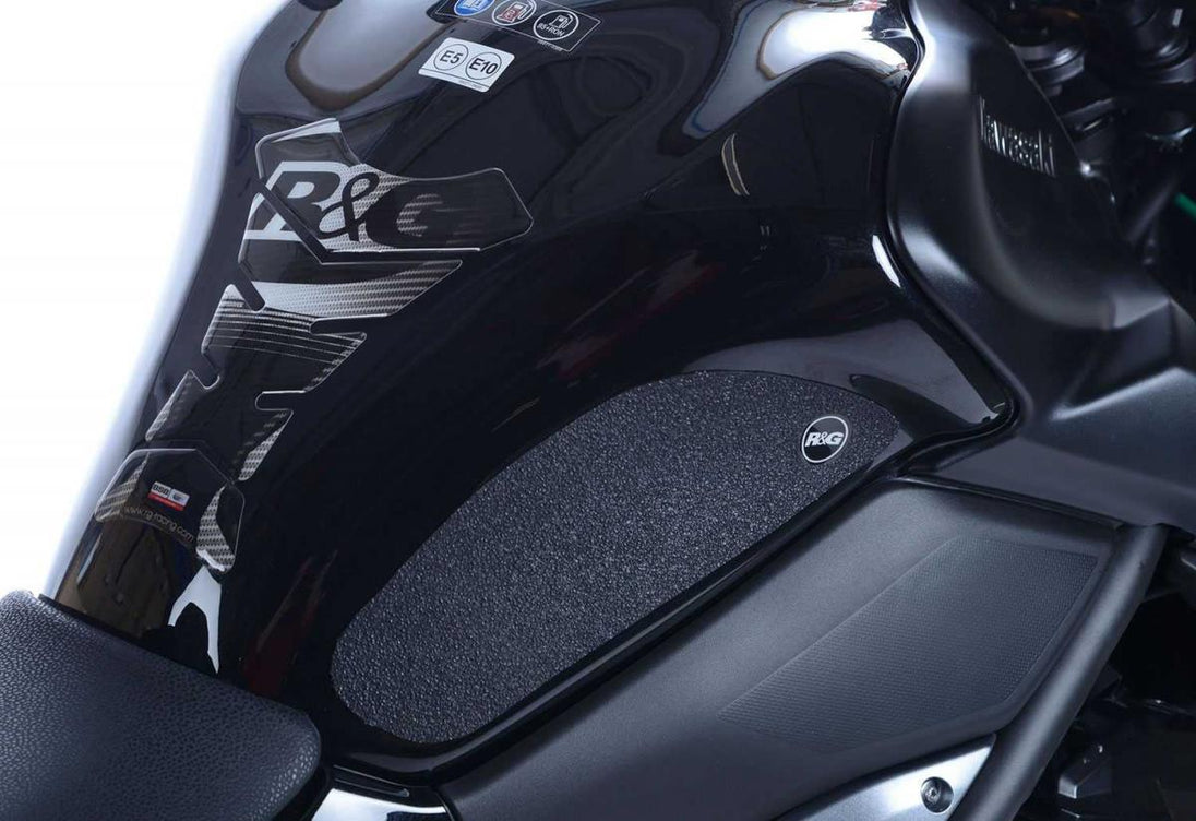 Dessa 2-delade R&G Tank Traction Grips har specialdesignats för Kawasaki Z900 17- och Kawasaki ZH2 20-modellerna. R&G Tank Traction Grips-kit finns tillgängliga för många olika motorcykelstilar och märken, och nya applikationer släpps regelbundet. Den unika texturen på R&G Tank Traction Grips har specialdesignats för att vara både mjuk och hållbar, vilket ger föraren det grepp och den känsla hen behöver för bättre kontroll över motorcykeln, vilket gör att föraren kan bibehålla en stabil kroppsställning vid kurvtagning och inbromsning. Tillverkad i Storbritannien.