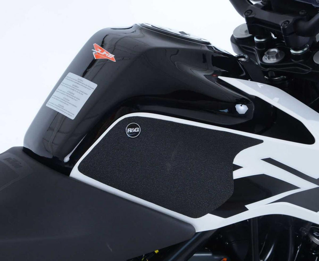 Dessa R&G Tank Traction Grips har specialdesignats för KTM 125 DUKE 17-23. R&G Tank Traction Grip-kit finns tillgängliga för många olika motorcykelstilar och märken, och nya applikationer släpps regelbundet. Den unika R&G Traction Grip-strukturen har specialdesignats för att vara både mjuk och hållbar, vilket ger föraren det grepp och den känsla hen behöver för att få bättre kontroll över motorcykeln, vilket gör att föraren kan bibehålla en stabil kroppsställning vid kurvtagning och inbromsning. Tillverkad i Storbritannien.