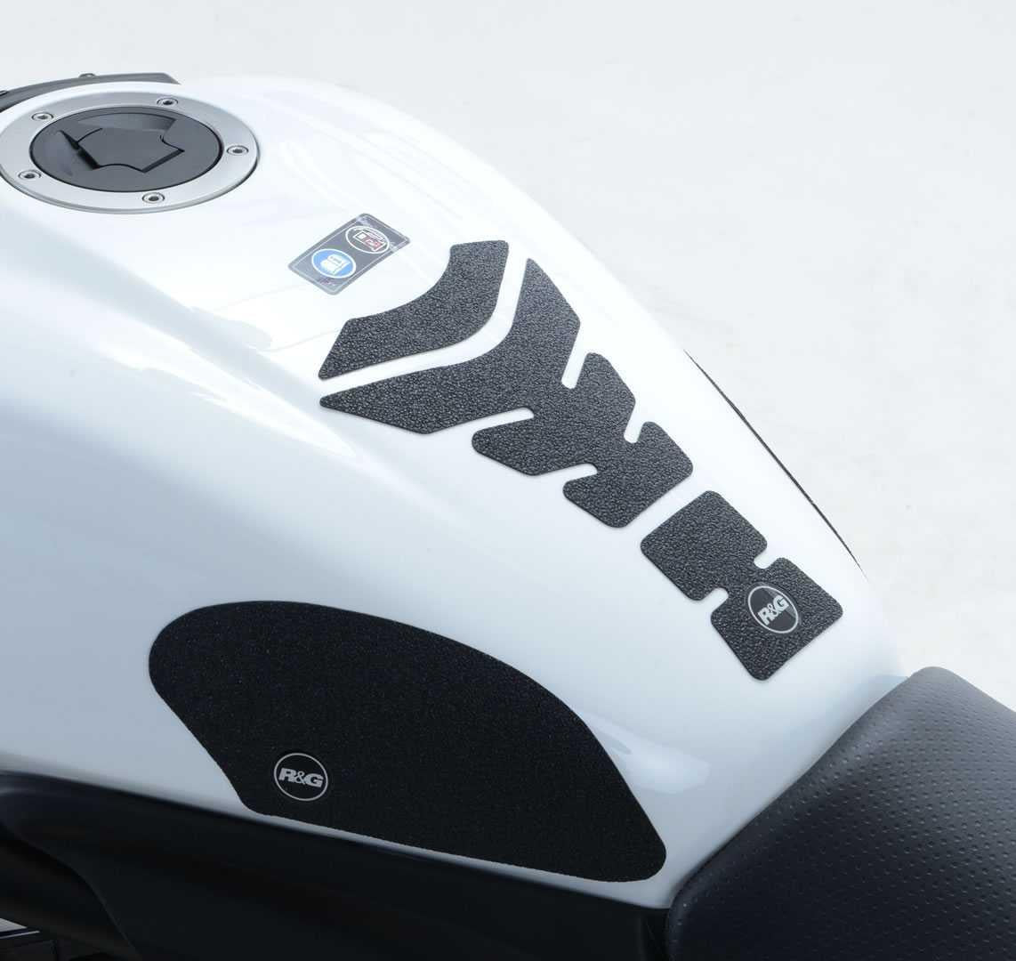 Från sportmotorcyklar till cruisers skyddar R&G tankskydd din bränsletank med stil från oönskade märken, repor från dragkedjor, spännen och allmänt slitage med vår nyutvecklade modulära tankskydd i 3 delar. Observera: R&G Tank Traction Grips-grepp som visas på sidorna av tanken INGÅR INTE utan finns tillgängliga separat.