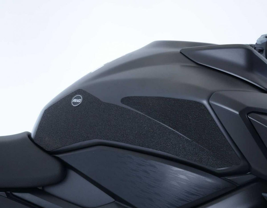 Detta 4-delade Tank Traction Grip-kit har specialdesignats för Suzuki GSX-S750 17-modellerna. R&G Tank Traction Grip-kit finns tillgängliga för många olika motorcykelstilar och märken, och nya applikationer släpps regelbundet. Den unika R&G Traction Grip-strukturen har specialdesignats för att vara både mjuk och hållbar, vilket ger föraren det grepp och den känsla hen behöver för bättre kontroll över motorcykeln, vilket gör att föraren kan bibehålla en stabil kroppsställning vid kurvtagning och inbromsning.