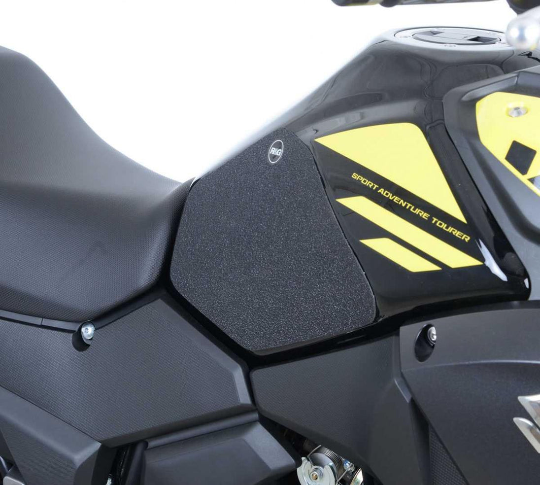 Detta 2-delade R&G Tank Traction Grip-kit har specialdesignats för Suzuki V-Strom 250 17-. R&G Tank Traction Grip-kit finns tillgängliga för många olika motorcykelstilar och märken, och nya applikationer släpps regelbundet. Den unika R&G Traction Grip-strukturen har specialdesignats för att vara både mjuk och hållbar, vilket ger föraren det grepp och den känsla hen behöver för bättre kontroll över motorcykeln, vilket gör att föraren kan bibehålla en stabil kroppsställning vid kurvtagning och inbromsning. Tillverkad i Storbritannien.