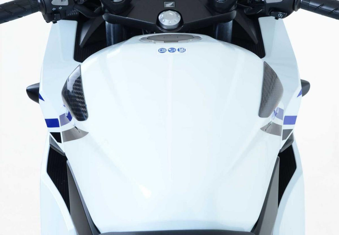 Detta tankglidare (par) kit är kompatibelt med Honda CBR500R 16- modeller. Används av California Superbike School. (http:www.superbikeschool.com) Våra tankglidare är tillverkade av kolfiber förstärkt med DuPont™ Kevlar®, vilket ger utmärkt krockskydd och slitstyrka. Speciellt gjutna för att passa perfekt på tanken, är de utformade för att passa i de mest utpräglade hörnen och områden som sannolikt kommer att träffas vid en krock eller ett fall. Tillverkad i Storbritannien. Appliceringen tar bara några minuter och de kan bespara dig att behöva byta ut din tank som kan bli bucklig eller repas vid en krock.