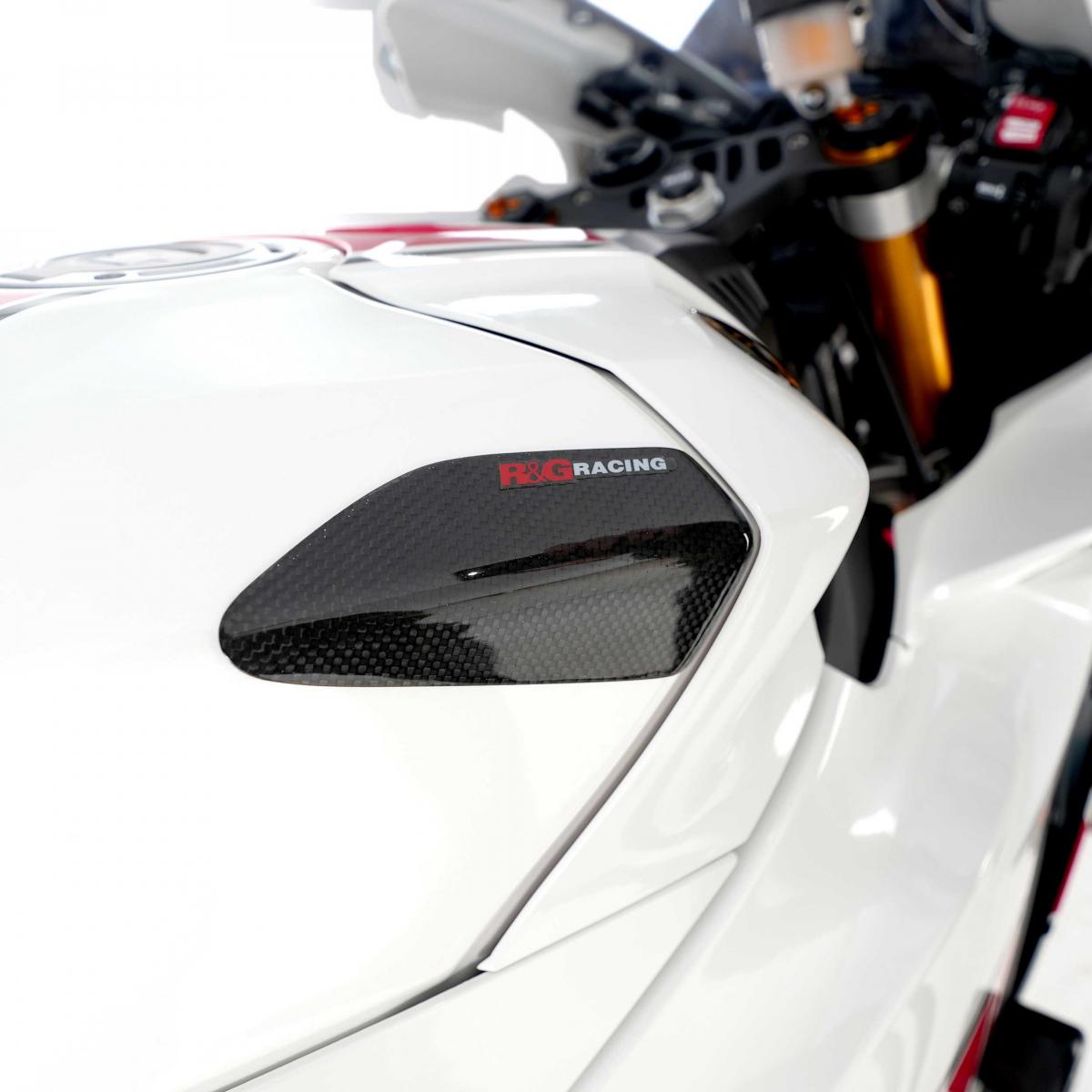 Detta tankglidare (par) kit är kompatibelt med Yamaha YZF-R1R1M 15-. Används av California Superbike School. (http:www.superbikeschool.com) Våra tankglidare är tillverkade av kolfiber förstärkt med DuPont™ Kevlar®, vilket ger utmärkt krockskydd och slitstyrka. Speciellt gjutna för att passa perfekt på tanken, är de utformade för att passa i de mest utpräglade hörnen och områden som sannolikt kommer att träffas vid en krock eller ett fall. Tillverkad i Storbritannien. Appliceringen tar bara några minuter och de kan bespara dig att behöva byta ut din tank som kan bli bucklig eller repig vid en krock.