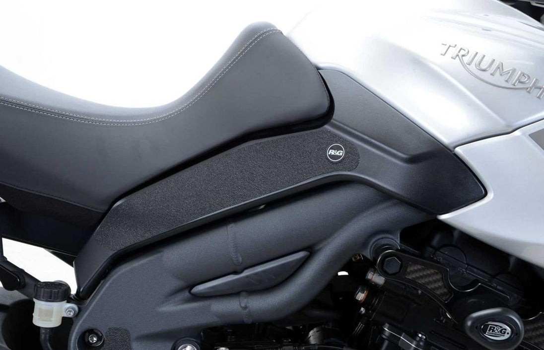 Dessa 2-delade R&G Tank Traction Grips har specialdesignats för Triumph Tiger Sport 1050 16-modellerna. R&G Tank Traction Grip-kit finns tillgängliga för många olika motorcykelstilar och märken, och nya applikationer släpps regelbundet. Den unika R&G Traction Grip-strukturen har specialdesignats för att vara både mjuk och hållbar, vilket ger föraren det grepp och den känsla hen behöver för att få bättre kontroll över motorcykeln, vilket gör att föraren kan bibehålla en stabil kroppsposition vid kurvtagning och inbromsning. Observera: R&G Tank Traction Grips levereras nu med ett självhäftande emblem med 25 mm diameter. Tillverkat i Storbritannien.