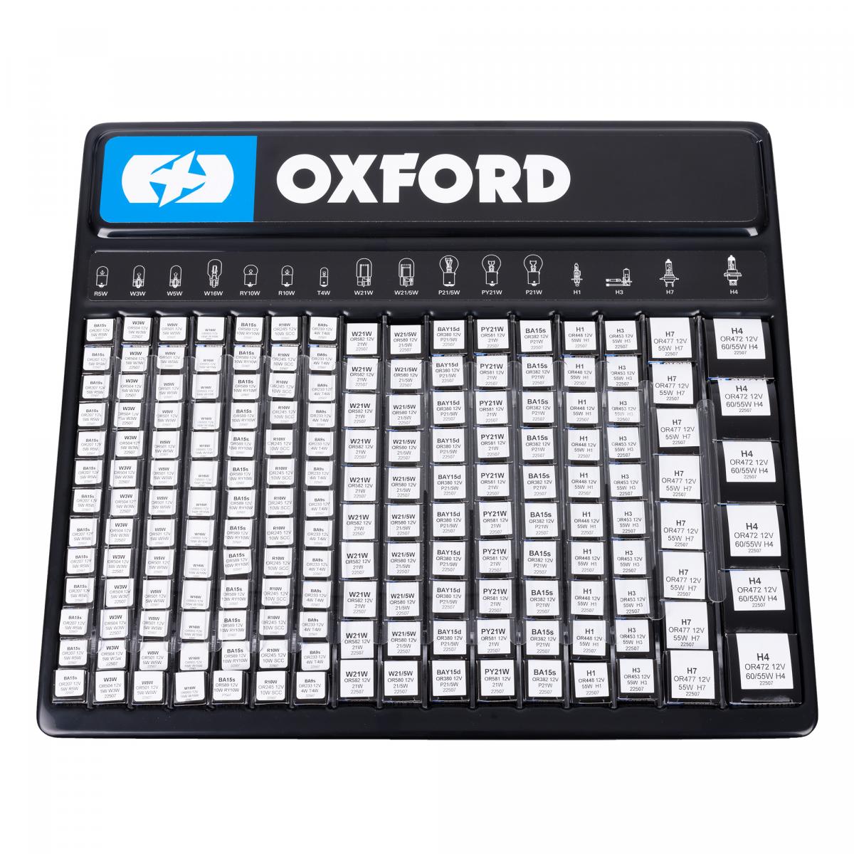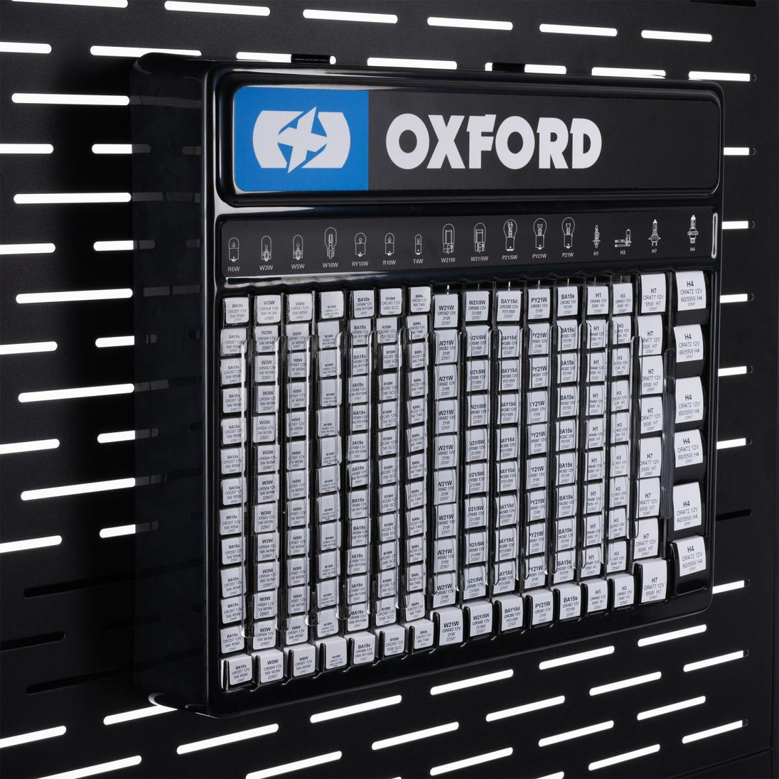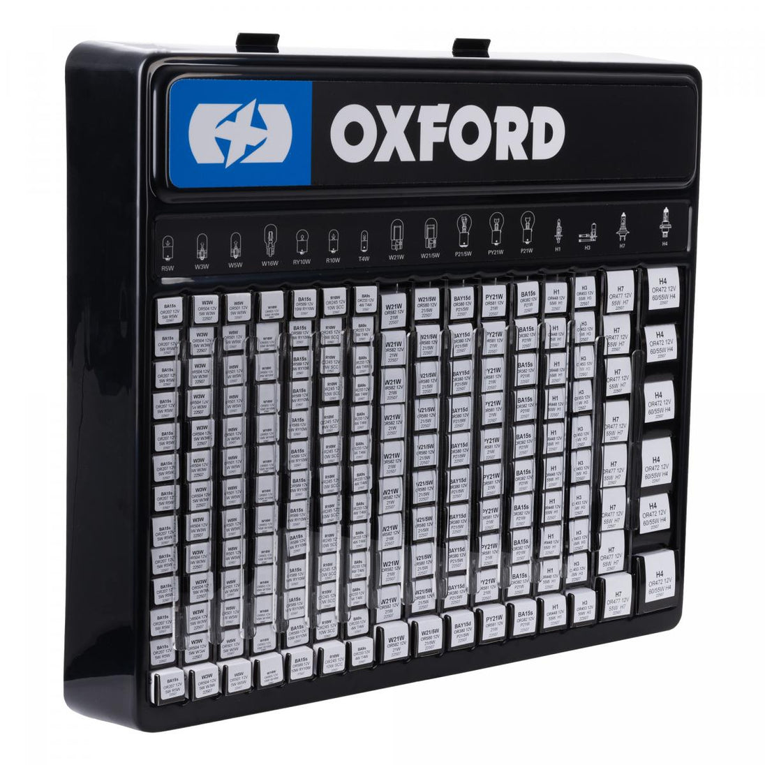 Oxford-lamputmatningsenheten levereras fullt utrustad med ett sortiment av OEM-kvalitetslampor, perfekta för verkstaden, men även hemma i verkstaden. Det inbyggda utmatningssystemet och en snabbguide säkerställer att varje lamptyp är prydligt organiserad och lätt att hitta. Lamputmatningssystemet kan enkelt fyllas på allt eftersom de säljs. Displayenheten kan monteras direkt på väggen (verkstad) eller fästas direkt på en befintlig väggdisplay. Sortimentet har valts ut noggrant och inkluderar 16 olika typer av halogenstrålkastare av hög kvalitet och mindre extralampor, vilket täcker de flesta behov av glödlampor för motorcyklar och skotrar. Viktiga funktioner - Innehåller de mest populära 12V-lamporna för ett brett utbud av motorcyklar och skotrar - Inkluderar strålkastarlampor av originalkvalitet och de mindre extralamporna - Kan enkelt monteras på en vägg - Snabbguide gör det enkelt att välja rätt glödlampa