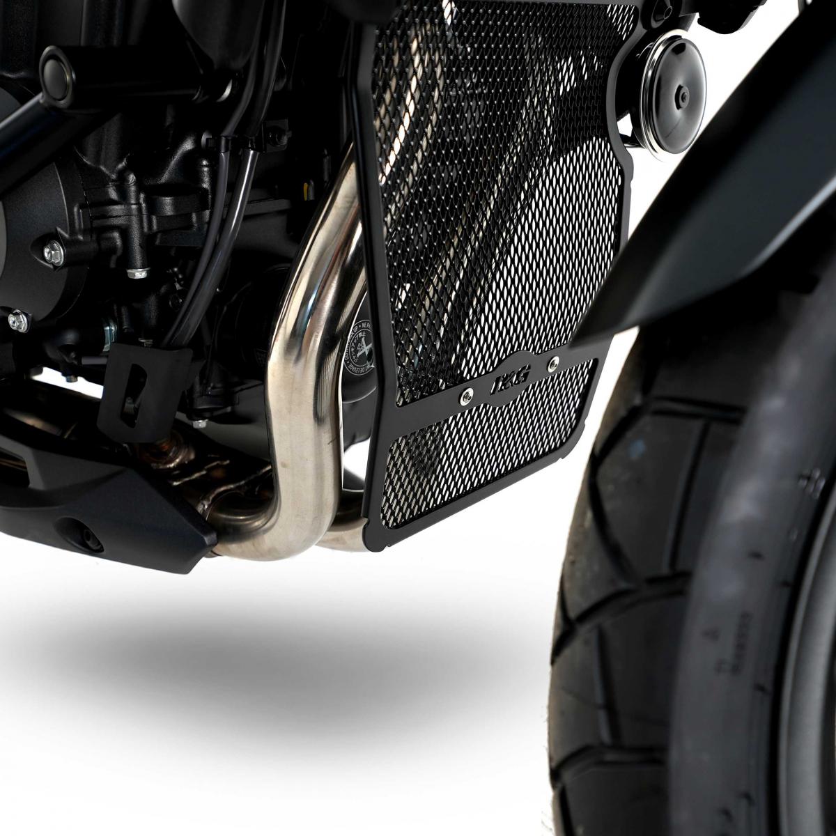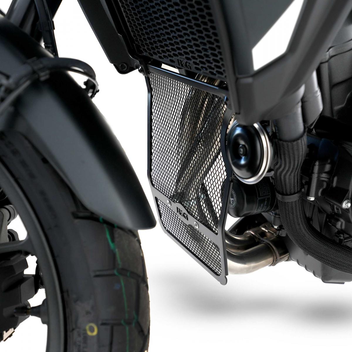 R&G:s nedrörsgaller är tillverkade av aluminium, förbättrar utseendet och skyddar dina dyra och känsliga nedrör och andra delar under kylaren från flygande skräp och skador. Produkten är kompatibel med Honda CB500X 19- och CB400X 19- samt NX500 24-modellerna. Finns i svart och rött.