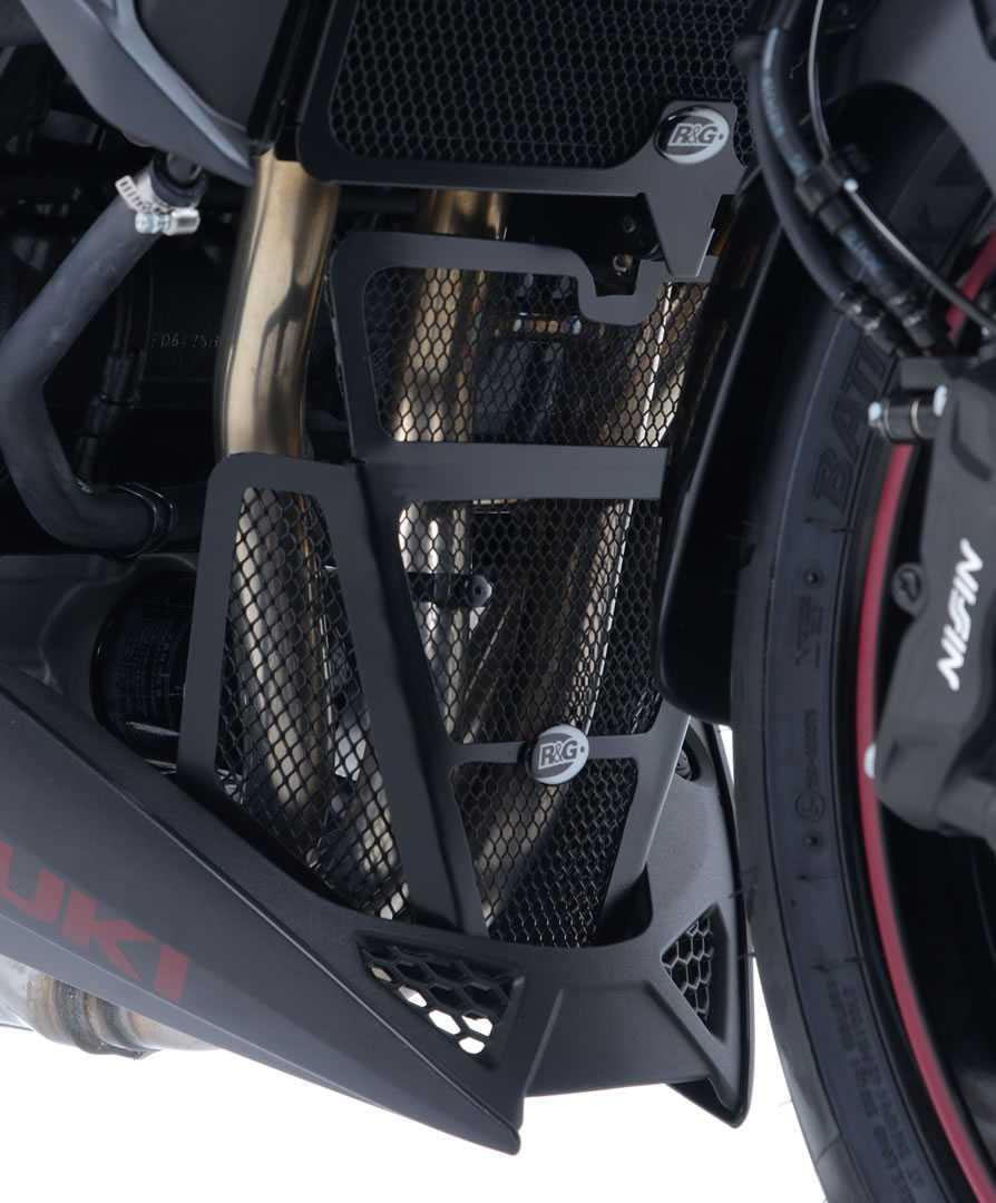 R&G:s nedrörsgaller är tillverkade av aluminium, förbättrar utseendet och skyddar dina dyra och känsliga nedrör och andra delar under kylaren från flygande skräp och skador. Produkten är kompatibel med Suzuki GSX-S750 17- modeller. Finns i svart pulverlackering. Observera: R&G kylarskydd ingår ej men finns tillgängligt separat.