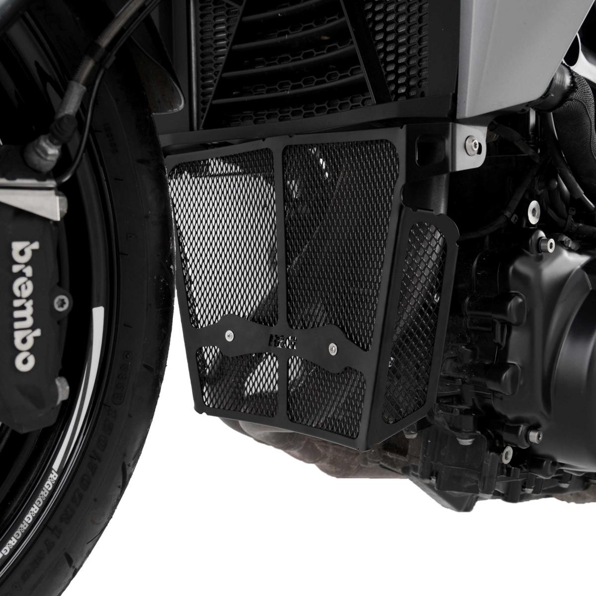R&G:s nedrörsgaller är tillverkade av aluminium, förbättrar utseendet och skyddar dina dyra och känsliga nedrör och andra delar under kylaren från flygande skräp och skador. Produkten är kompatibel med BMW F900 R 20- modellerna. Finns i svart, titan och mörkblått.