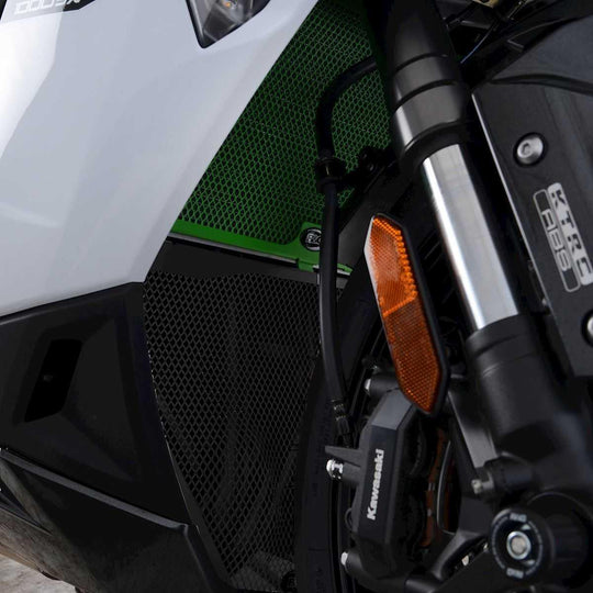 R&G:s nedrörsgaller är tillverkade av aluminium, förbättrar utseendet och skyddar dina dyra och känsliga nedrör och andra delar under kylaren från flygande skräp och skador. Produkten är kompatibel med Kawasaki Ninja 650 17-24-modellerna. Finns i svart...Ordinarie pris 1 229 krOrdinarie pris 1 229 kr