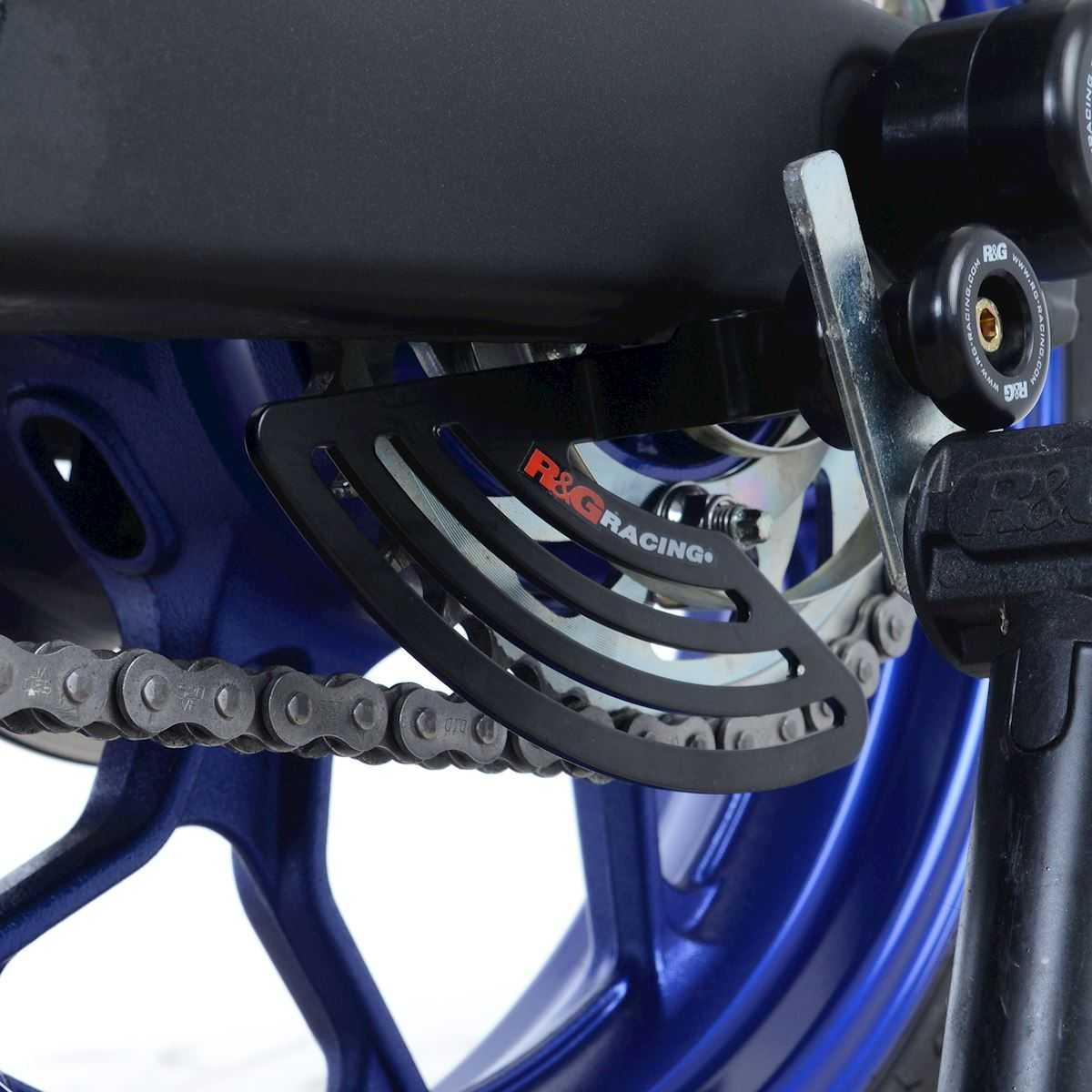 R&G Racings tåskydd inspirerat av road racing har utvecklats och designats för att ge maximalt skydd i kombination med ett snyggt utseende. Tillverkat av aluminium för en lätt och stark produkt har det förborrade hål som fästs i befintliga fästen på svingarmen, vilket säkerställer effektiv täckning av drevet. Detta tåskydd för racing är kompatibelt med Yamaha YZF-R1R1M 15-, R25 14-, MT-25 15-, MT-10 16- och SP 17-, MT-03 15- och R3 15-, Yamaha Tracer 9 (GT) 21- och Yamaha MT-09 (SP) 21-modellerna. Inga modifieringar av motorcykeln krävs för att montera detta tåskydd.