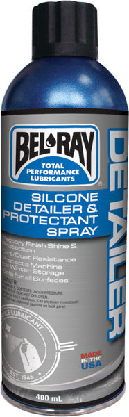 Silicon Detailer & Protectant Spray är en premiumprodukt framtagen för att ge en spektakulär finish på alla plast- och metalltor. Den här produkten är konstruerad för att stöta bort damm och smuts från ytan av delar som behandlats med Silicon Detailer & Protectant Spray. Den är formulerad och innehåller kemikalier som inte kommer att reagera på färg, metall eller plast men fortfarande binder bra ytor. Silikon Detailer & Protectant Spray kommer ihärdigt hålla fast ytor utan springer iväg. Beläggningen är lättare efter användning och kommer inte att finnas kvar på ytor efter att vara korrekt tvättas bort. Silikon Detailer & Protectant Spray är formulerad med miljömässiga inerta föreningar som inte kommer att orsaka negativa effekter i miljön.