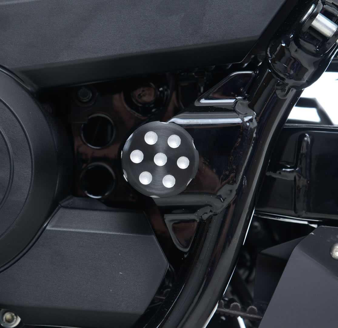 Detta R&G Frame Tidy-kit passar snyggt över den annars exponerade bulten som sitter på vänster sida av Harley Davidson Street 500750 cruiser-modellerna. Skyddar den från vägsmuts, lera och skräp, och säkerställer att bultens huvud hålls korrosionsfritt och så rent som möjligt.