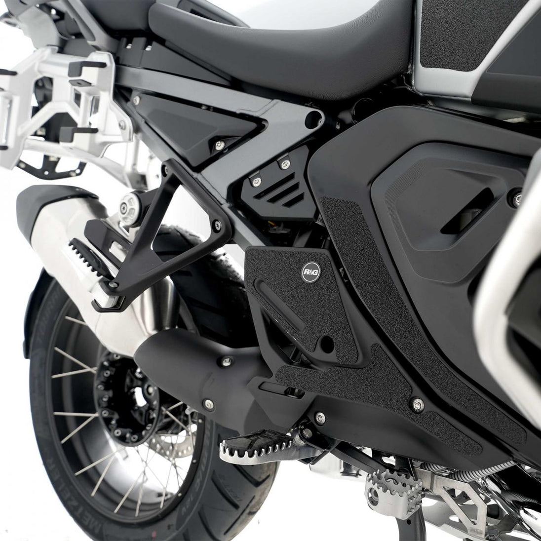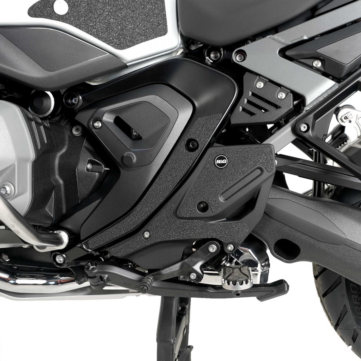 Detta 6-delade stövelskyddskit har specialdesignats för BMW R 1300 GS Adventure. 24-R&G stövelskyddskit finns tillgängliga för en mängd olika motorcykelstilar och märken, med nya applikationer som regelbundet släpps. Den unika R&G-strukturen har specialdesignats för att vara hållbar och ger föraren en buffert mellan stöveln och de exponerade områdena på svingarmen, vilka (ibland) kan komma i kontakt med varandra under kurvtagning, vilket orsakar slitage och oönskade skador på svingarmen eller stövlarna (båda dyra att reparera!). Observera: R&G stövelskydd levereras nu med ett självhäftande emblem med 25 mm diameter. Tillverkat i Storbritannien.