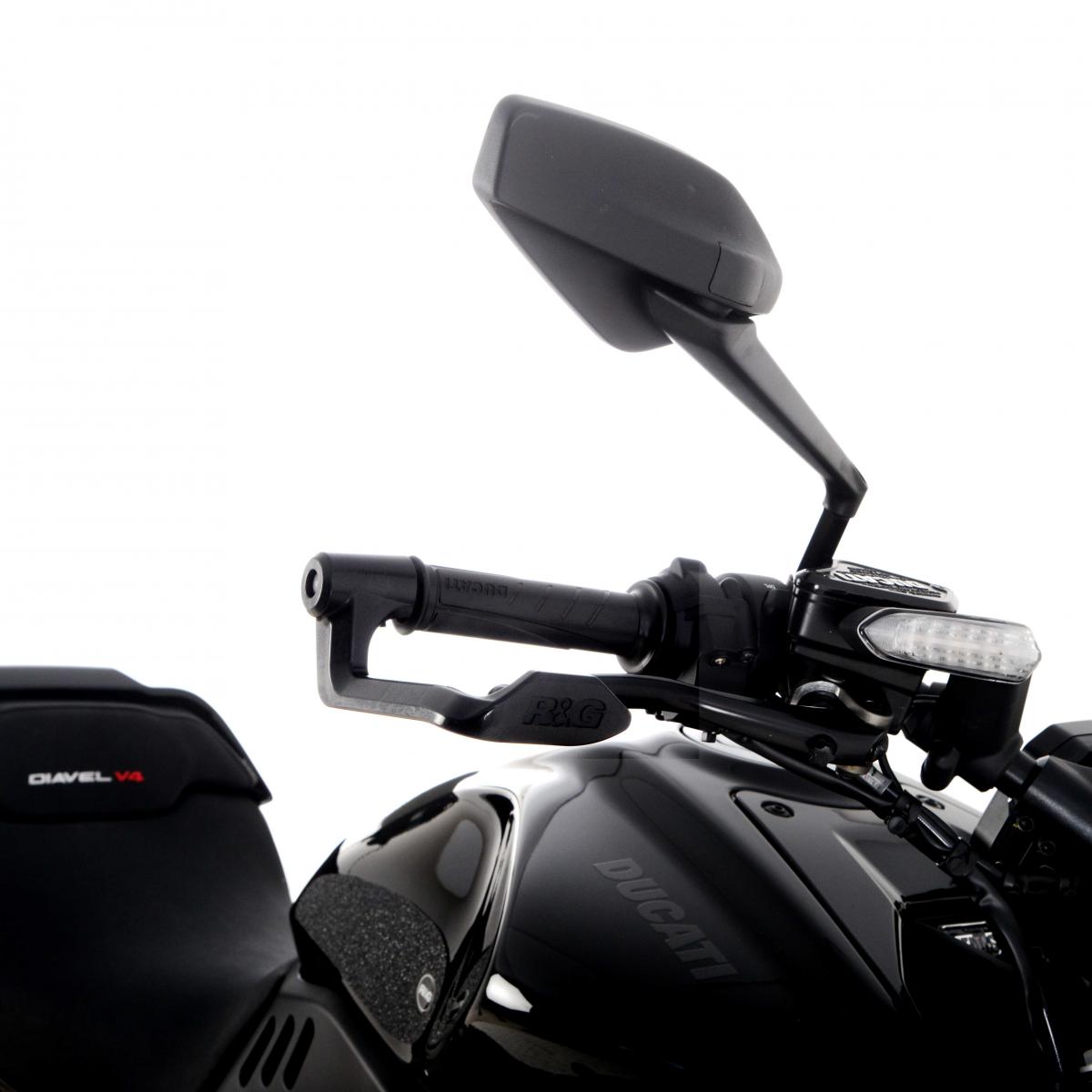 Vårt helt nya R&G bromshandtagsskydd har specialdesignats för modellerna Ducati X Diavel 16-, Diavel V4 23-, Honda Monkey 18-, Ducati Hypermotard 950 (SPRVE) 21- och Ducati Diavel 1260 (S) 21-. Ursprungligen utformat i Moto2 men nu använt av nästan alla motorcykelföretag världen över (ACU, MSVR, MotoAmerica) och krävs för racing. Lever Guard utvecklades för att undvika oavsiktlig inkoppling av frambromshandtaget vid tät racing (antingen från oavsiktlig kontakt med en annan motorcykel eller till och med en förare) men kan lika gärna användas för vägkörning, vilket skyddar ditt/dina handtag från träffar från backspeglarna samtidigt som det filtrerar tillbaka vilket potentiellt kan orsaka inkoppling av frambromsen. R&G bromshandtagsskydd är FIM-godkända delar!