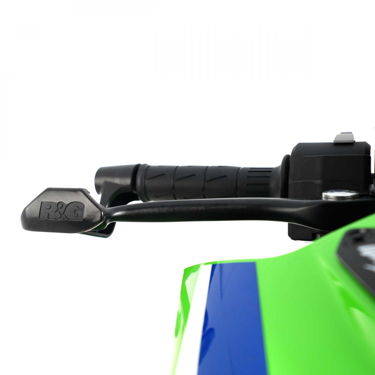 Vårt helt nya R&G bromshandtagsskydd kan monteras på bromssidan och har utformats specifikt för Kawasaki Z400, Z250 19-, Z500 24-, Ninja 250 400 18-, Z125 19-, Ninja 125 19-, Ninja 1000SX 20- 24, Z900 20- 24, Z900RS 21- 24 & ZH2 20- 24, Z650RS 21- 24 & ZX-4R(R) (SE) 23- 24, Eliminator 500 2024-modellerna. Ursprungligen utformad i Moto2 men nu använd av nästan alla motorcykelföretag världen över (ACU, MSVR, MotoAmerica, FIM) och krävs för racing, utvecklades bromshandtaget för att hjälpa till att undvika oavsiktlig inkoppling av frambromshandtaget under täta hjul mot hjul-racing (antingen genom oavsiktlig kontakt med ...). en annan cykel eller till och med en cyklist) men kan lika gärna användas för landsvägscykling, vilket skyddar ditt/dina reglage från stötar mot backspeglarna samtidigt som det filtrerar bort eventuella bromsskador. R&G Bromsreglageskydd är FIM-godkända delar!